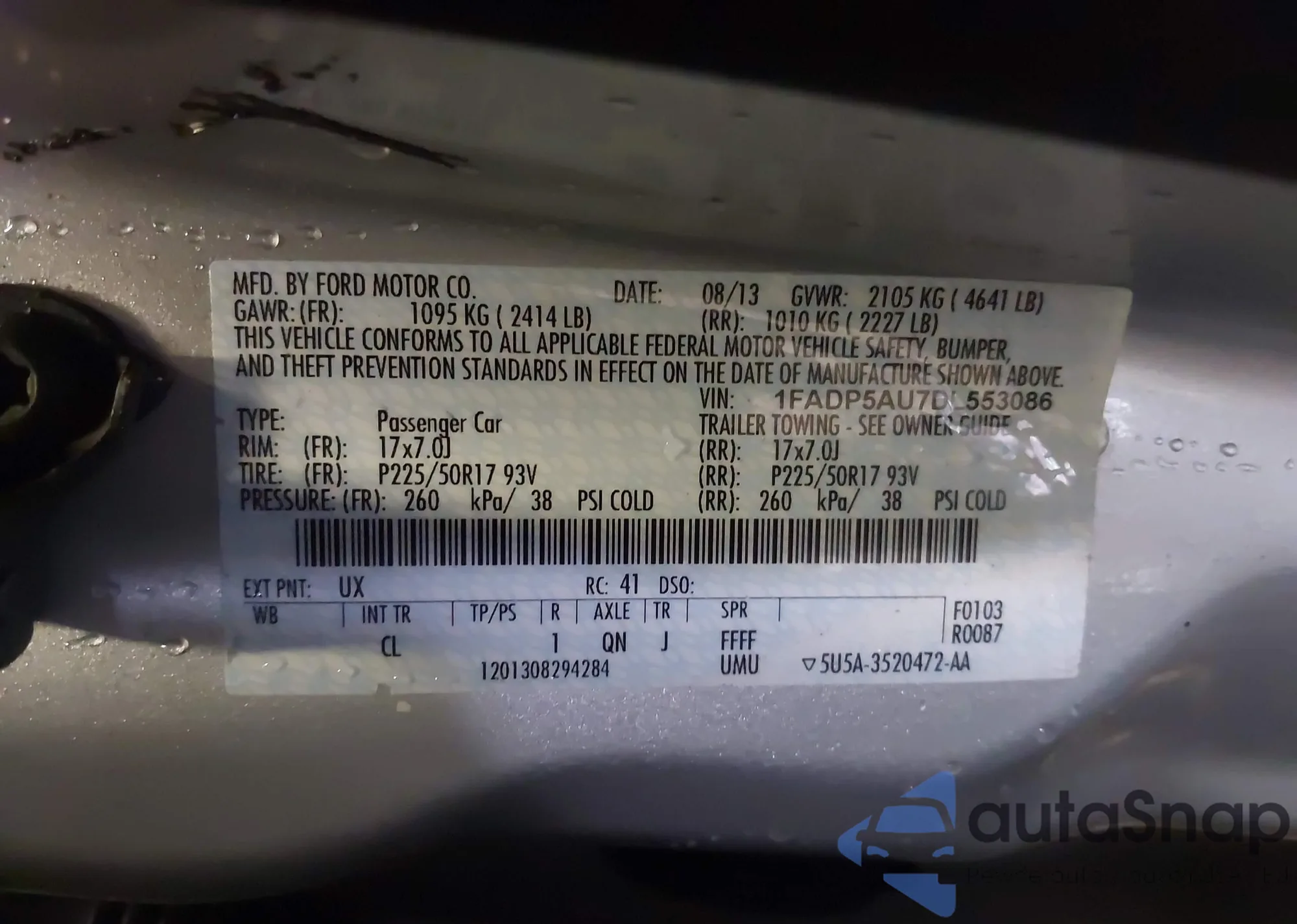 • VIN 1FADP5AU7DL553086