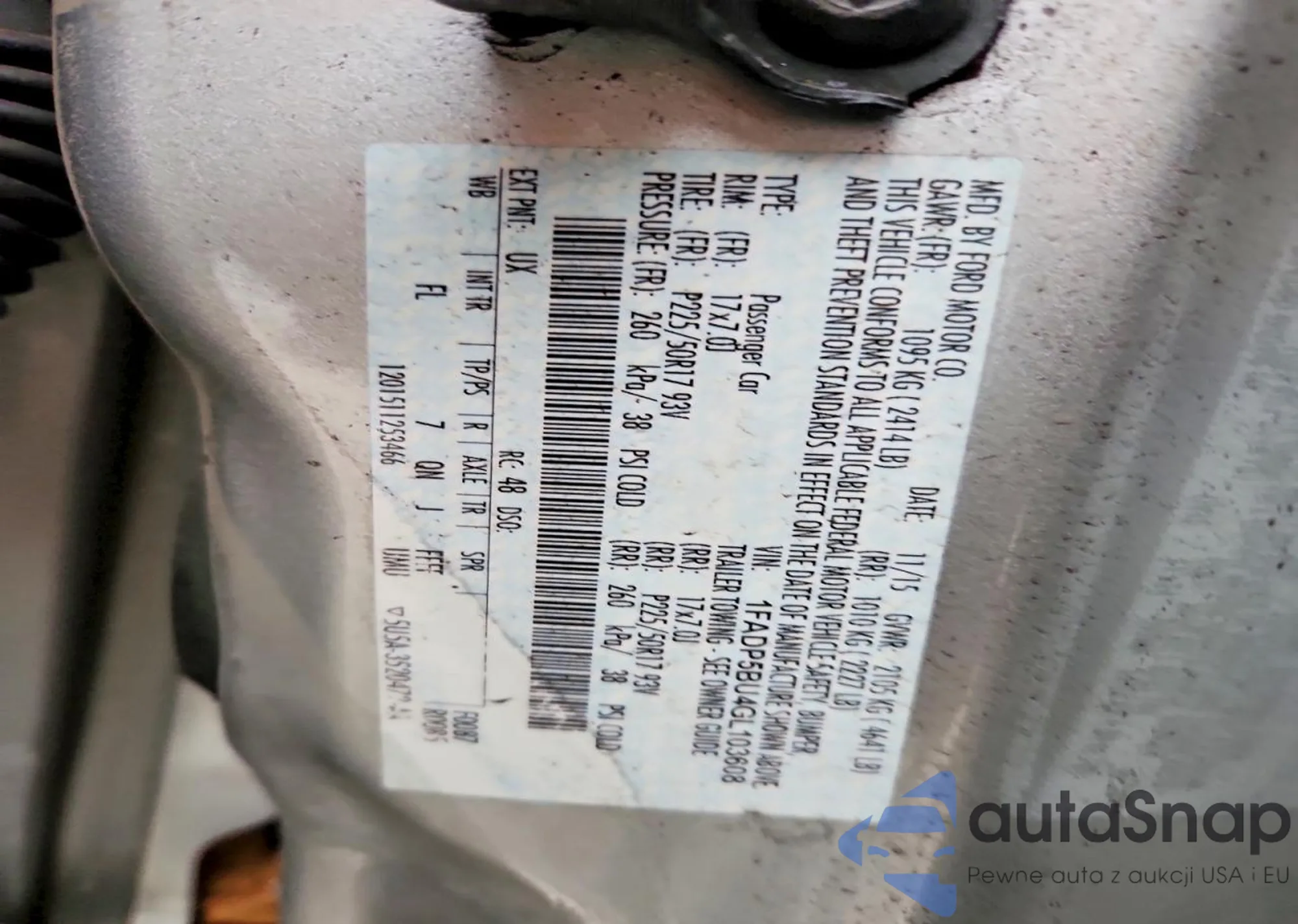 • VIN 1FADP5BU4GL103608