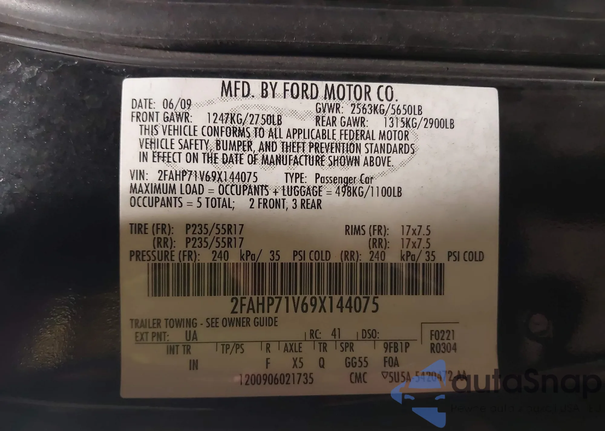 LOT: 44199058 VIN: 2FAHP71V69X144075