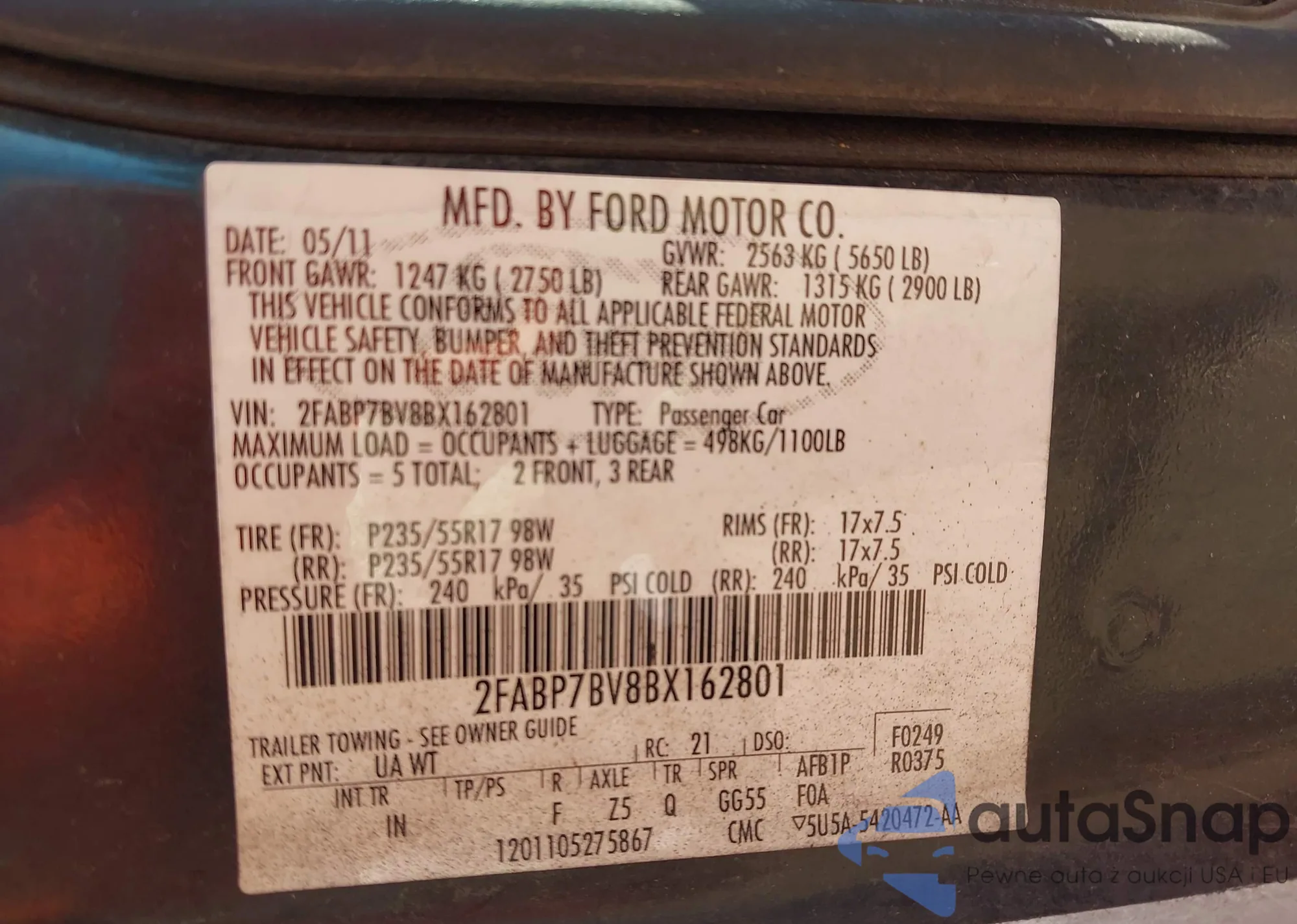 LOT: 44505291 VIN: 2FABP7BVXBX167949
