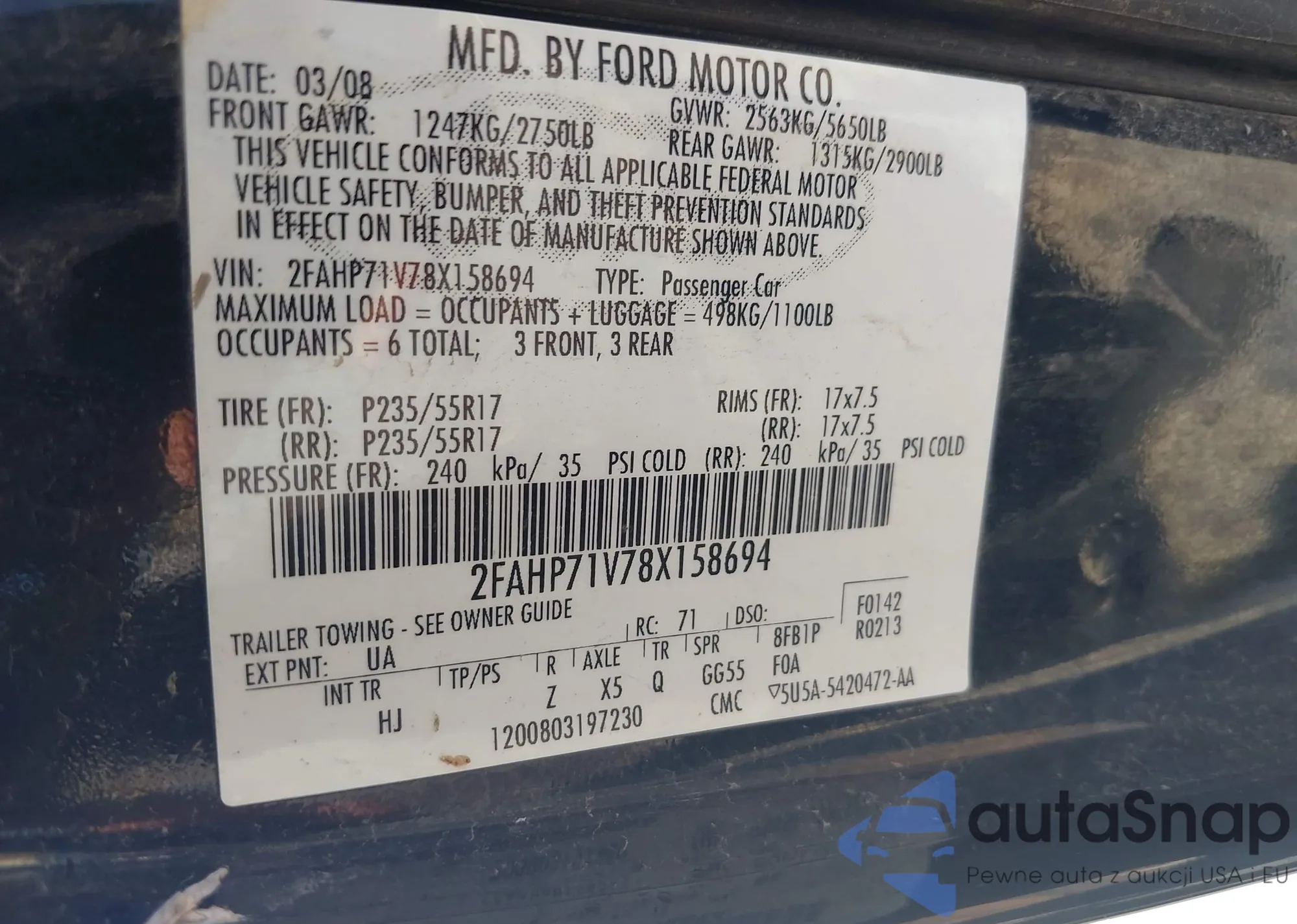 LOT: 44580078 VIN: 2FAHP71V28X135825