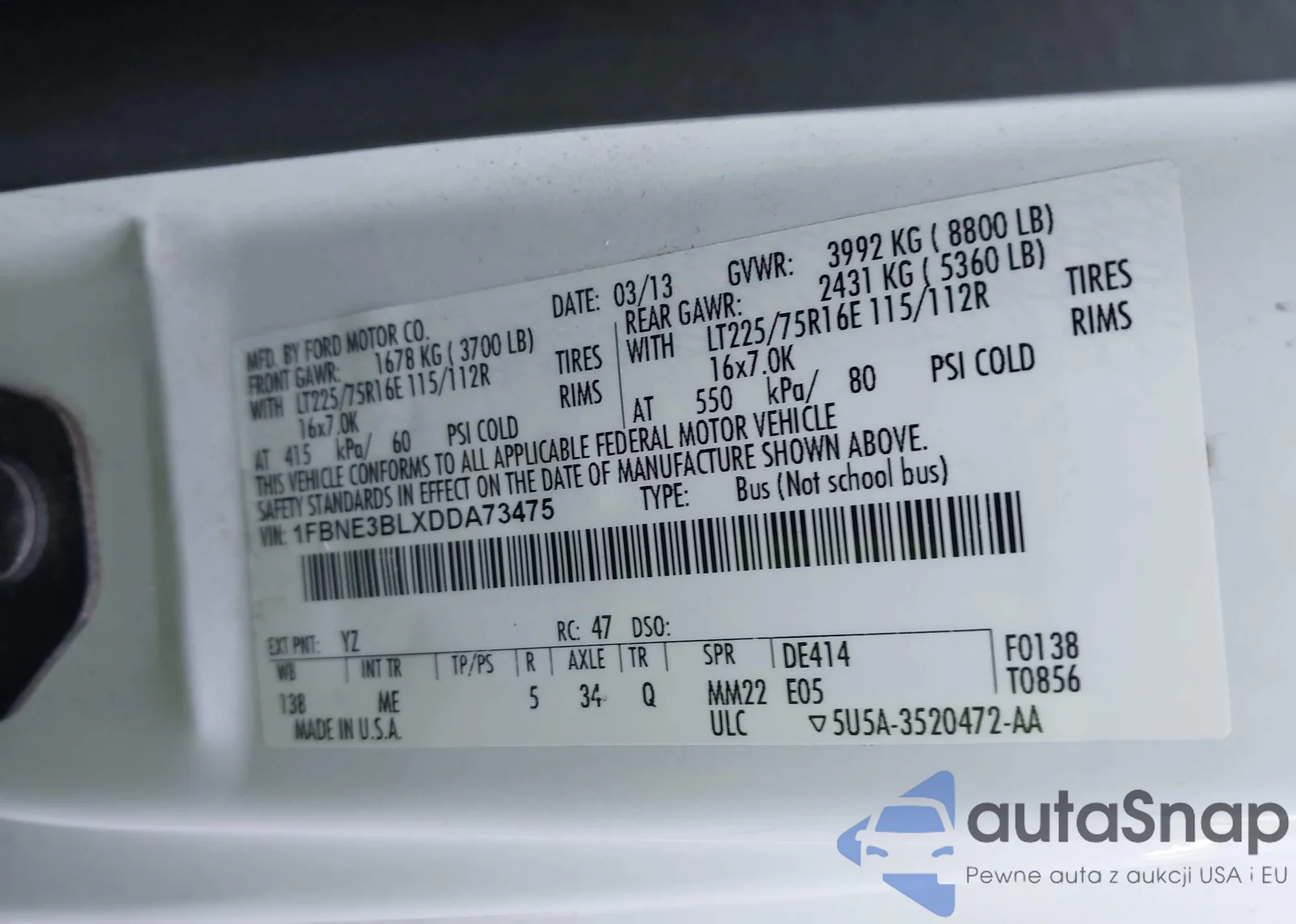 • VIN 1FBNE3BLXDDA73475