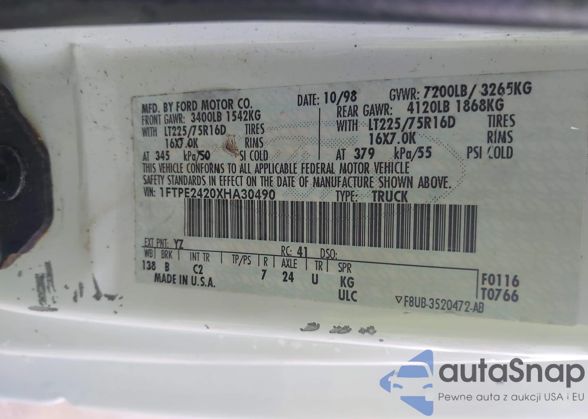 • VIN 1FTPE2420XHA30490