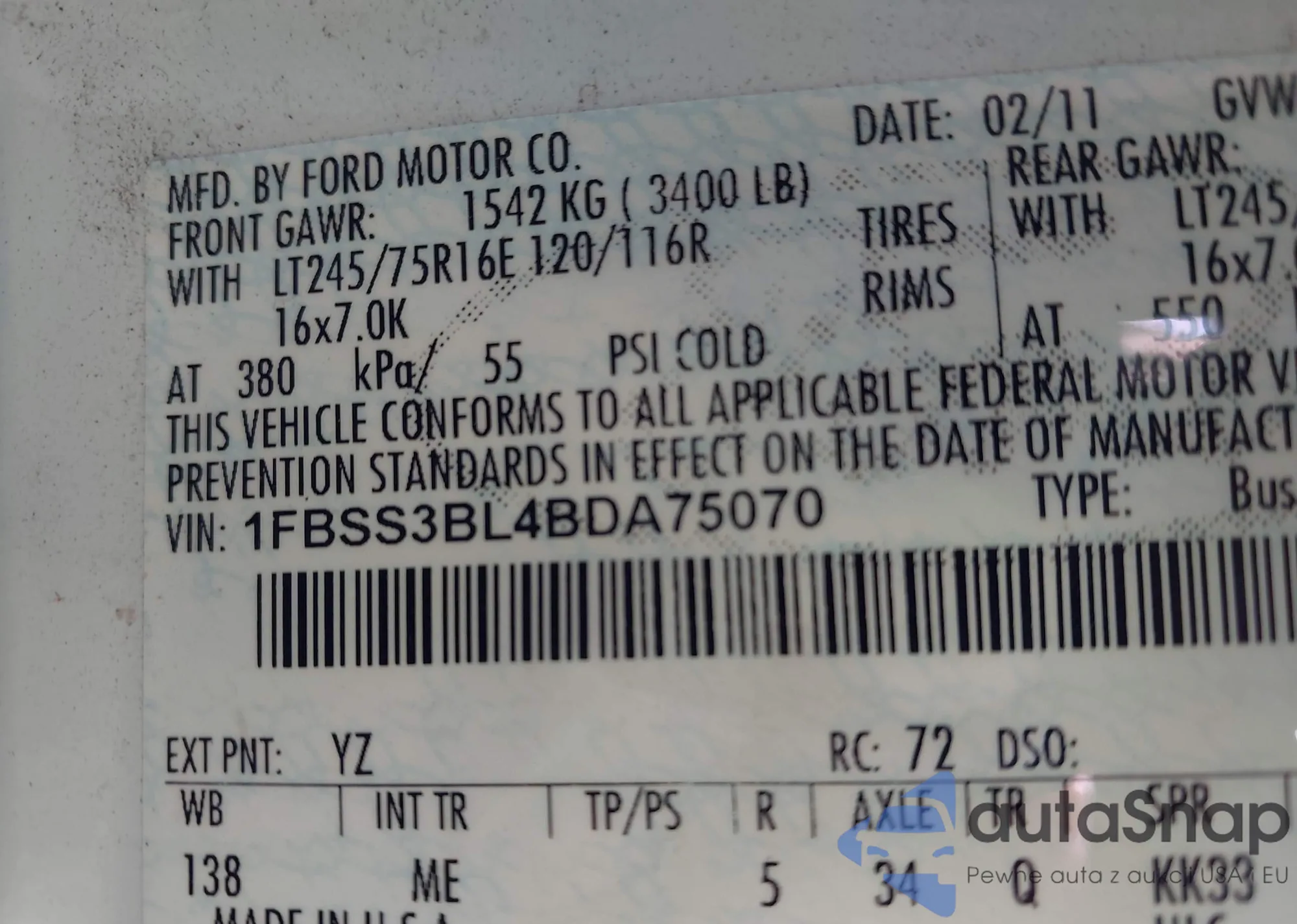 • VIN 1FBSS3BL4BDA75070