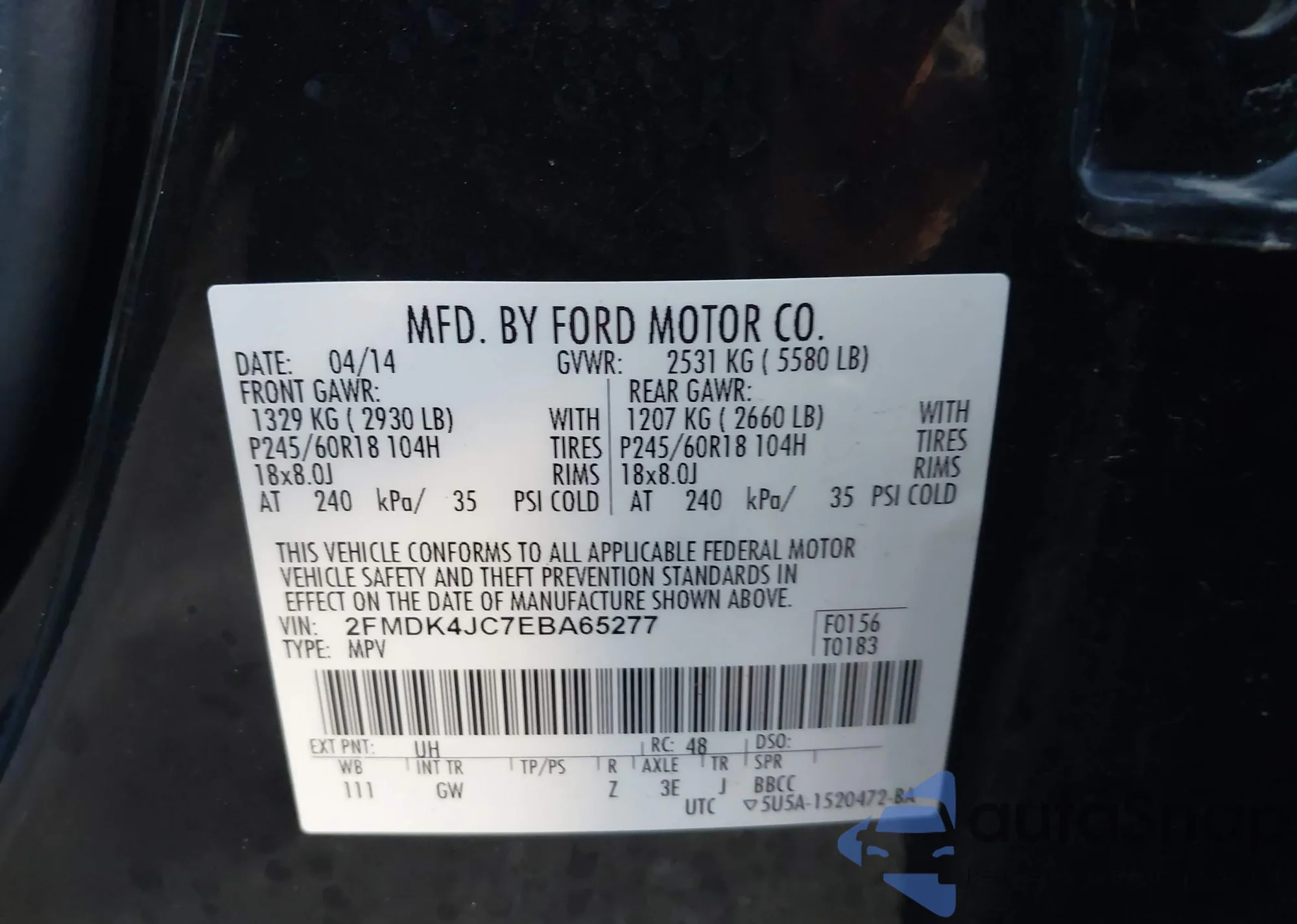 LOT: 44065005 VIN: 2FMDK4JC7EBA65277