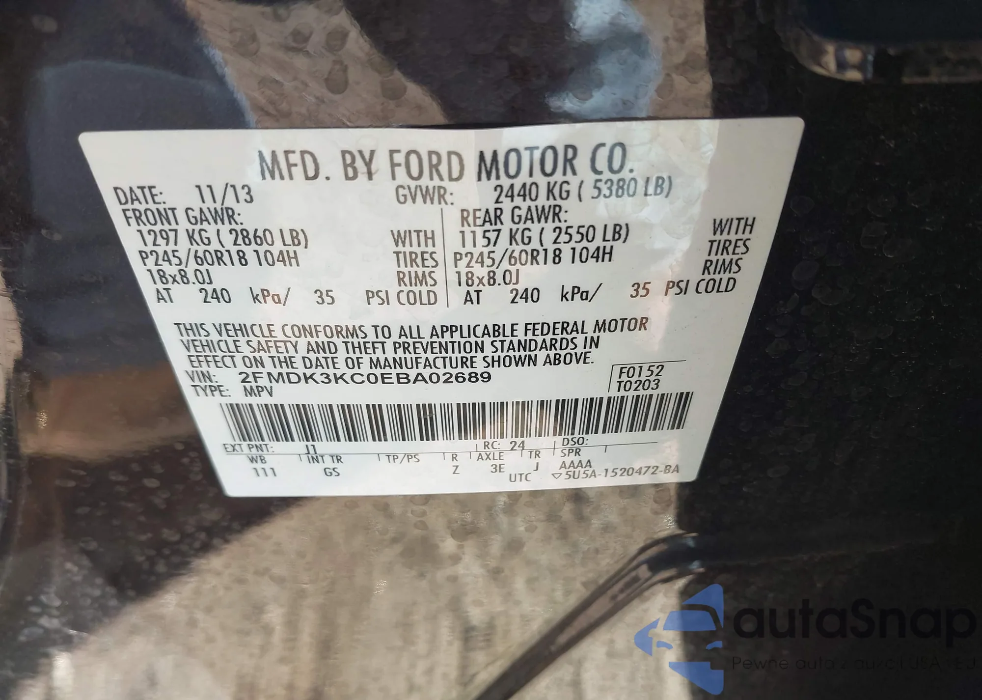 • VIN 2FMDK3KC0EBA02689