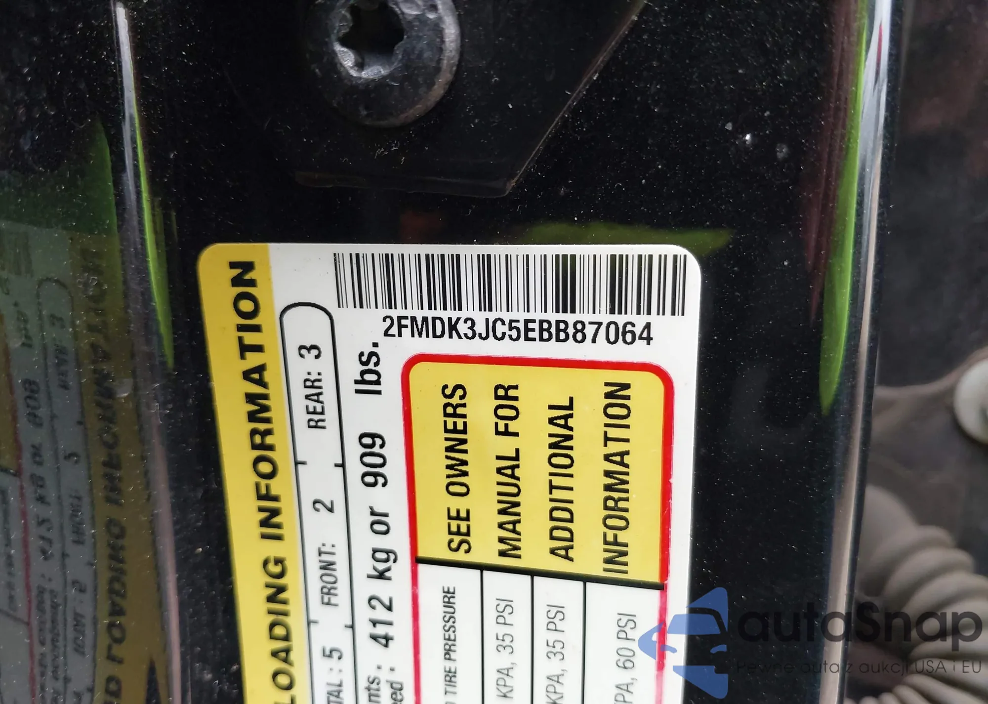 LOT: 43953258 VIN: 2FMDK3JC5EBB87064