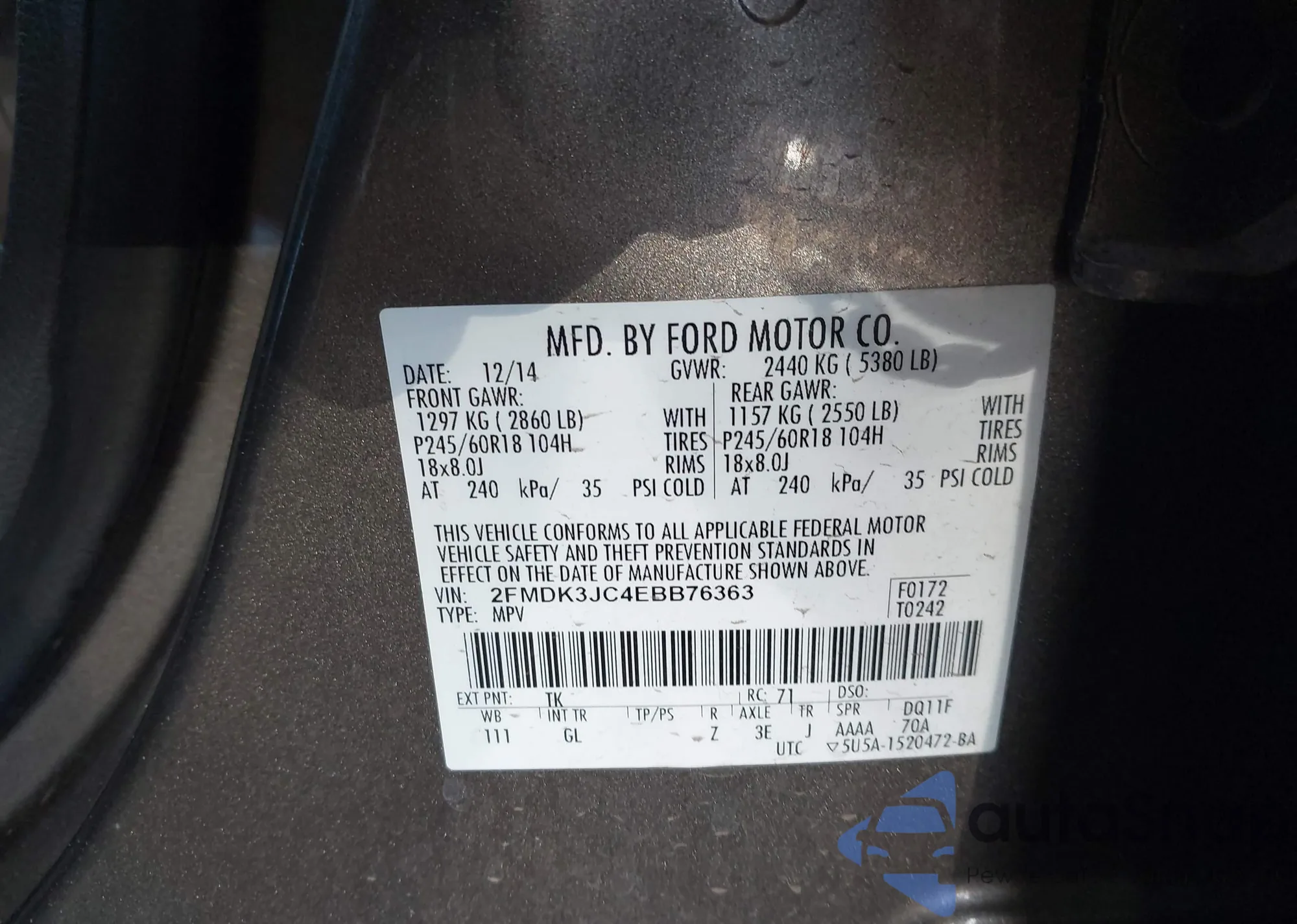 • VIN 2FMDK3JC4EBB76363