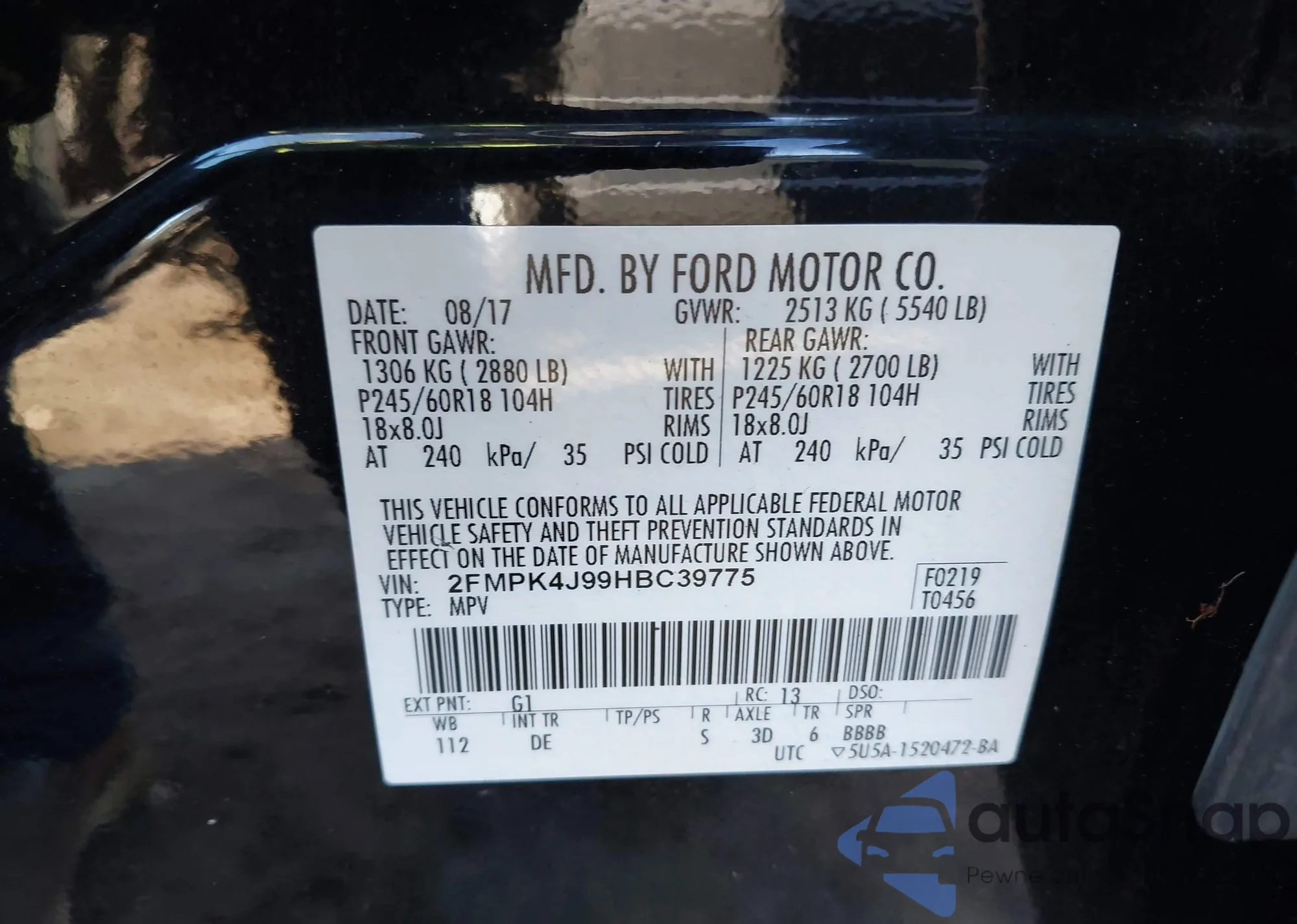 • VIN 2FMPK4J99HBC39775