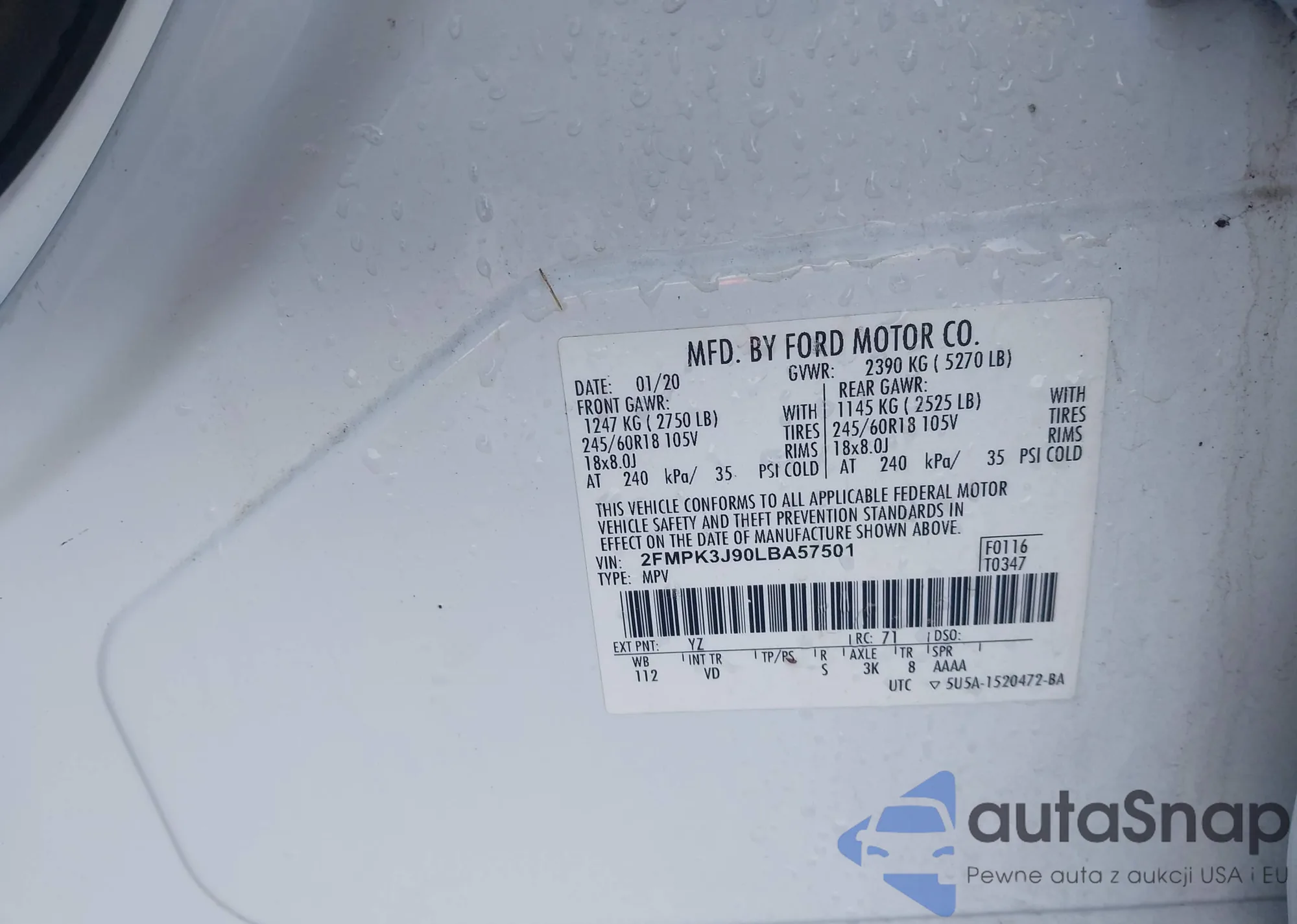• VIN 2FMPK3J90LBA57501