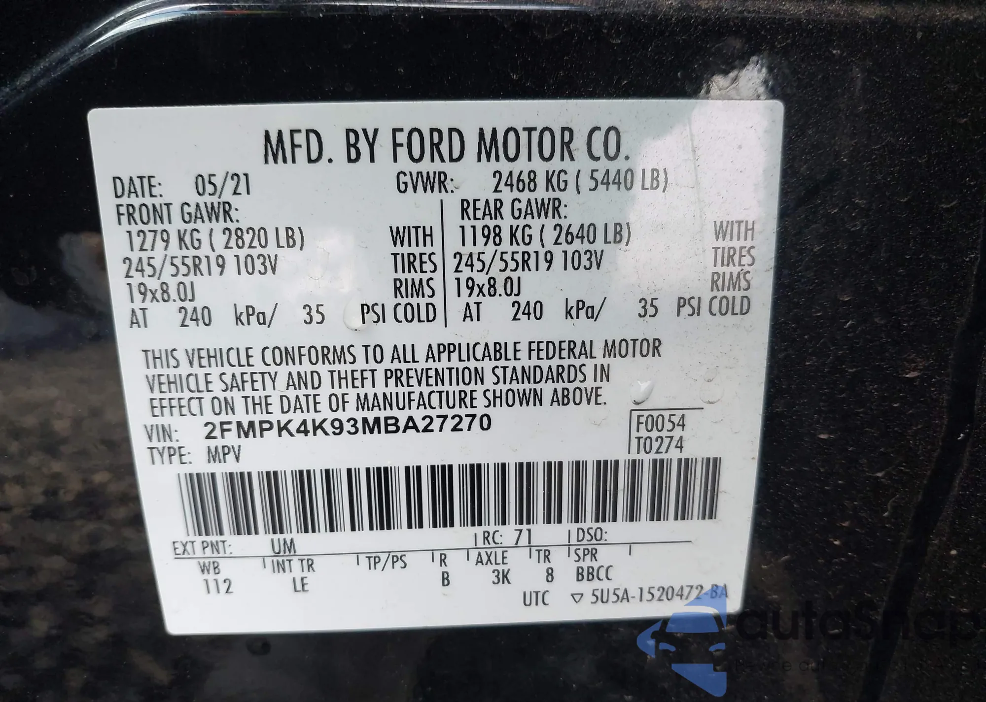 • VIN 2FMPK4K93MBA27270