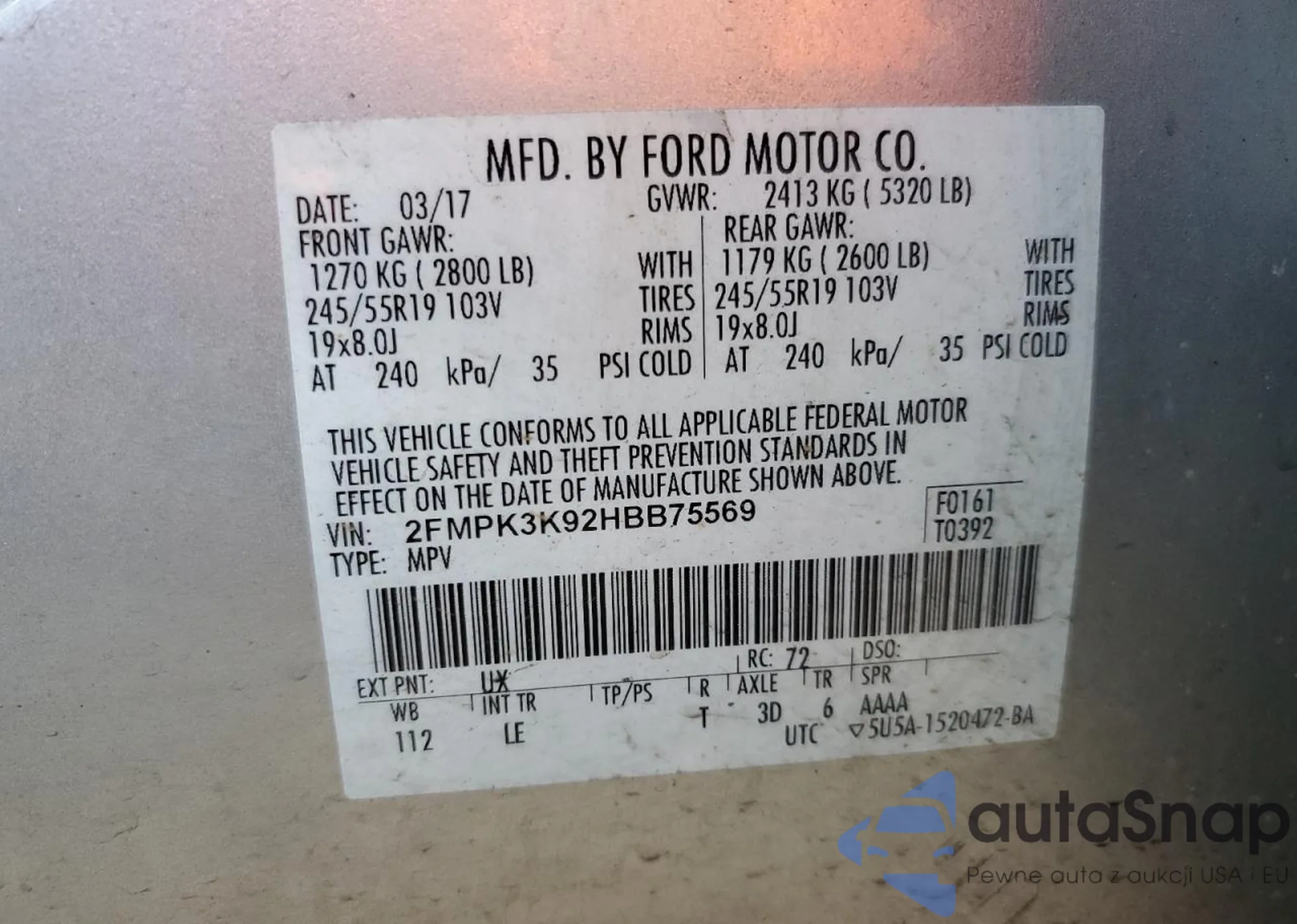 LOT: 74998853 VIN: 2FMPK3K92HBB75569