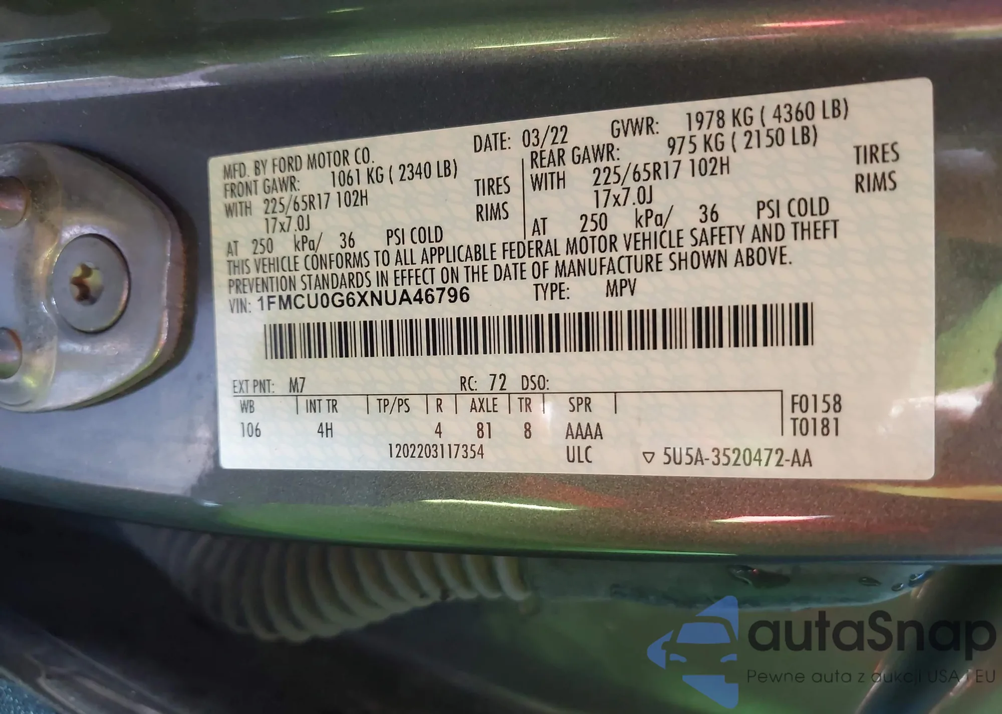 • VIN 1FMCU0G6XNUA46796