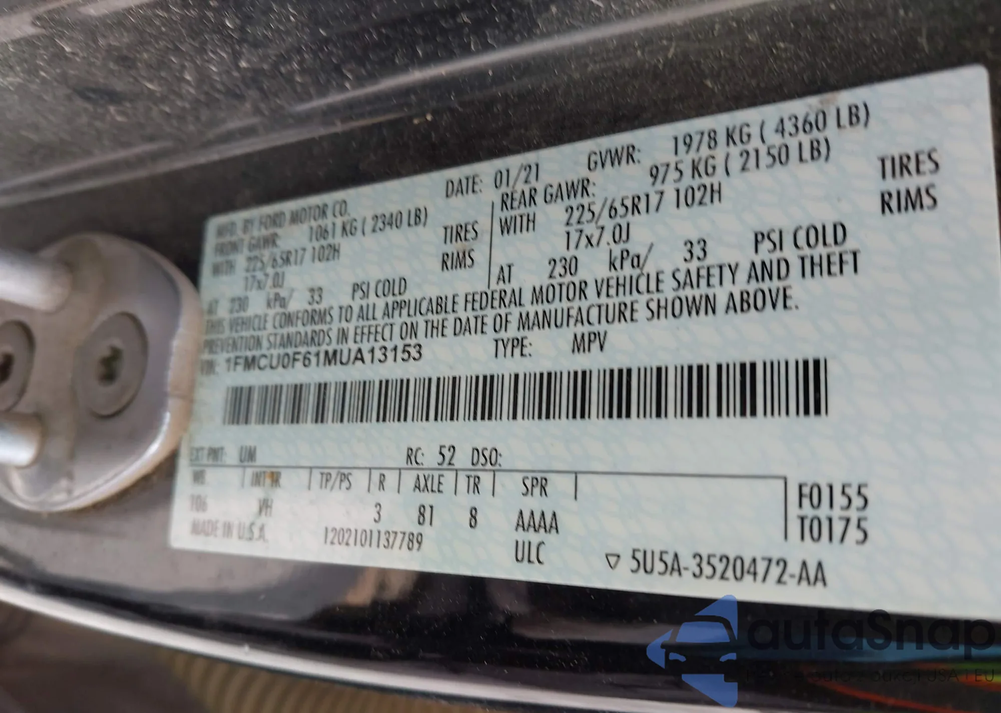 • VIN 1FMCU0CZ5MUA92907