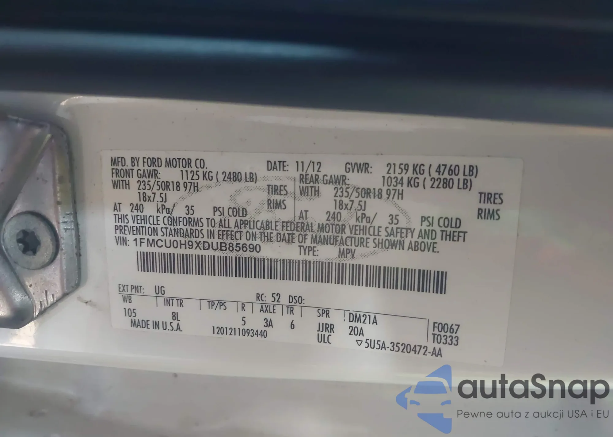 LOT: 42771661 VIN: 1FMCU9J97DUB06328