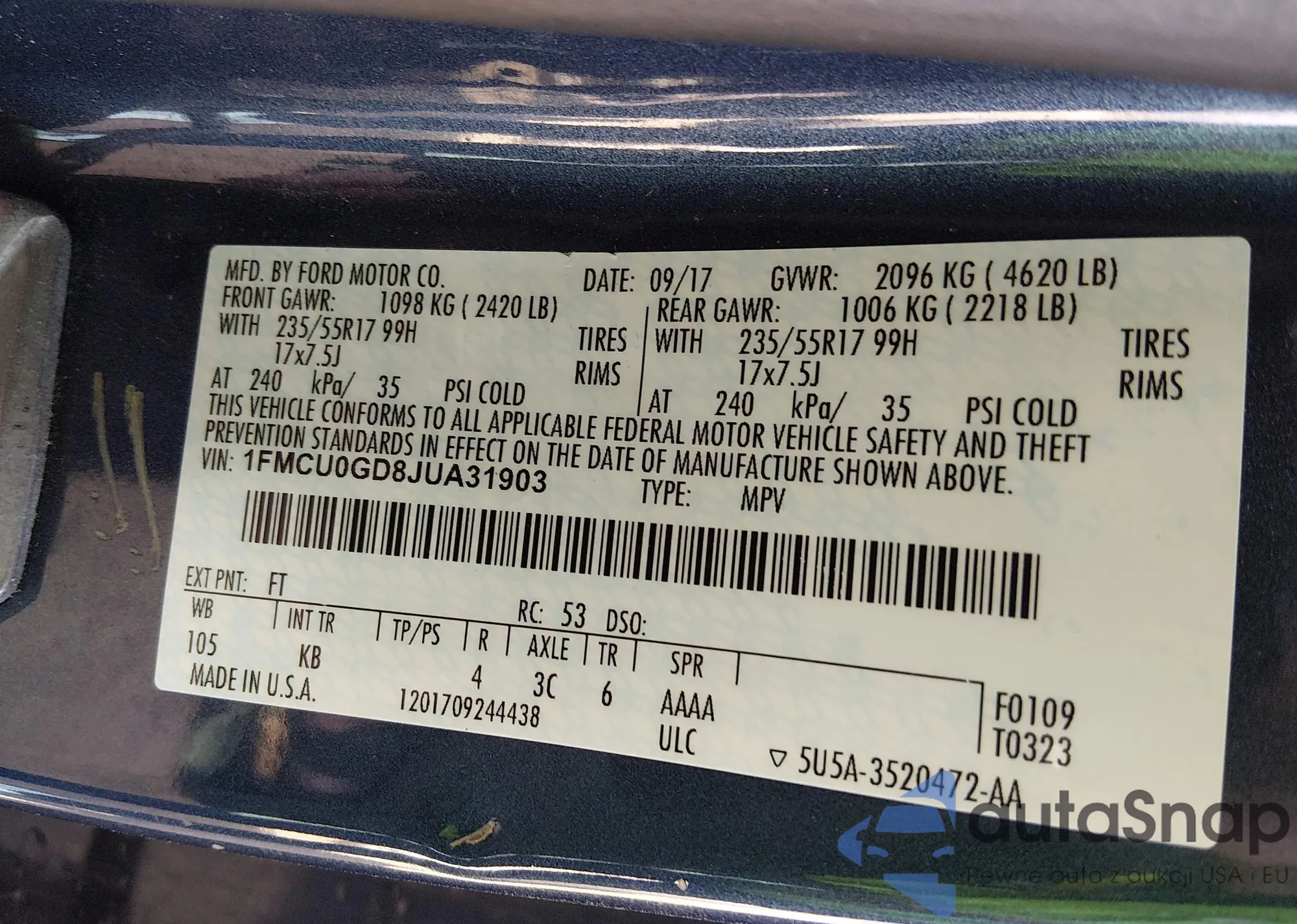 • VIN 1FMCU0GD8JUA31903