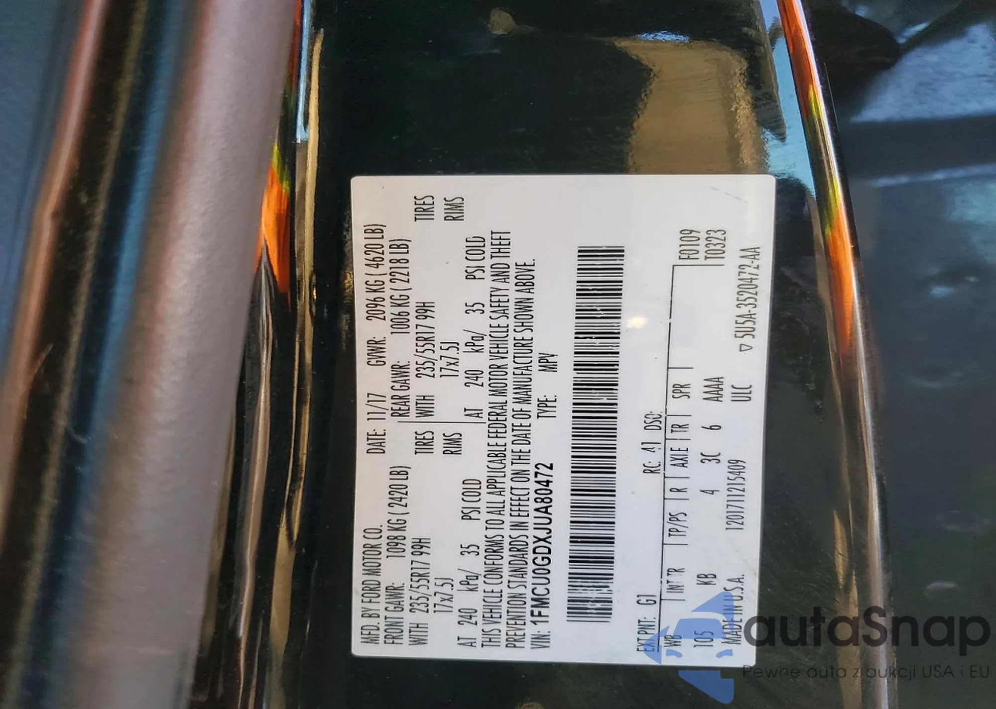 • VIN 1FMCU0GDXJUA80472