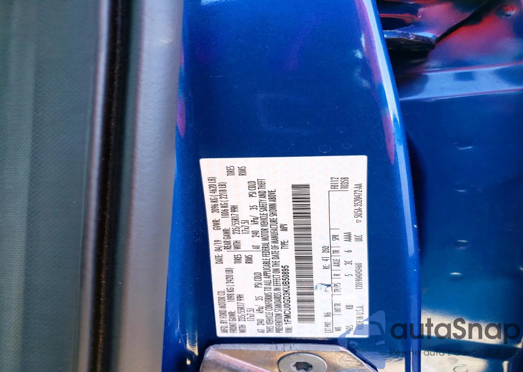 LOT: 76950725 VIN: 1FMCU0GD3KUB50895