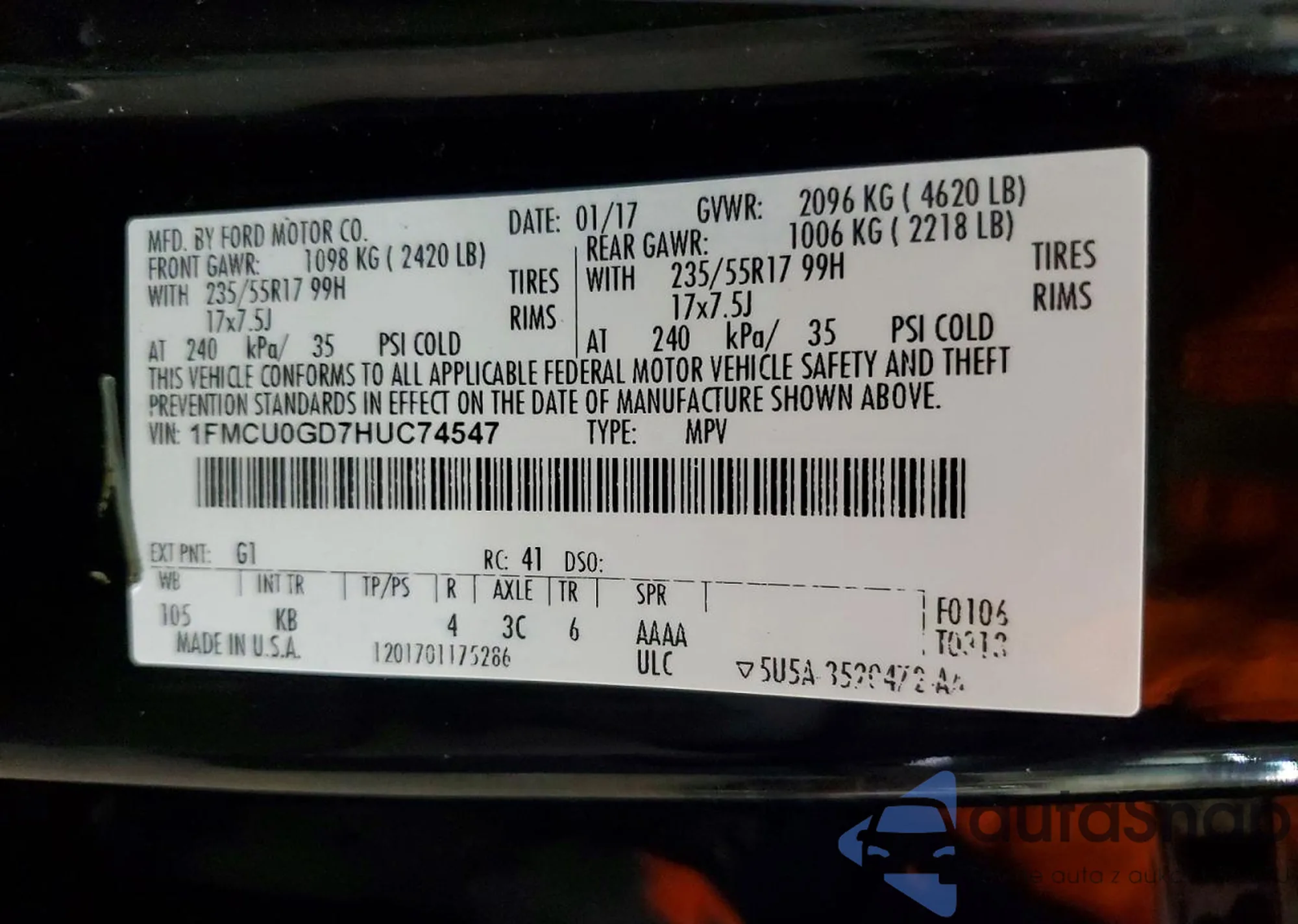 • VIN 1FMCU0GD7HUC74547