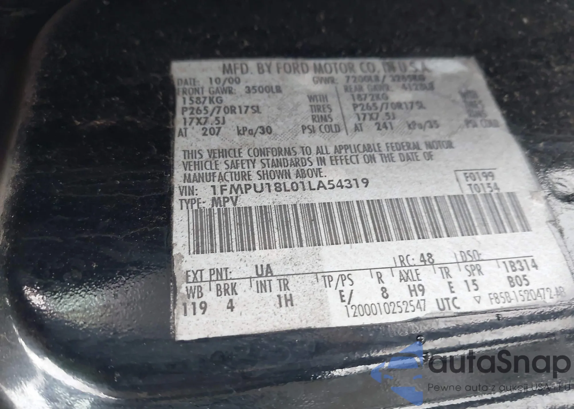 LOT: 44229639 VIN: 1FMPU18L01LA54319