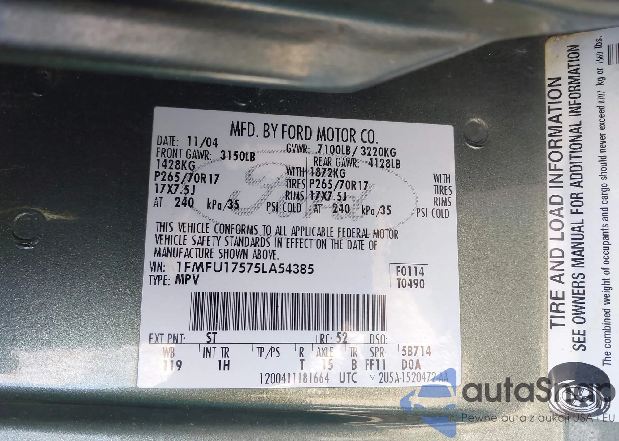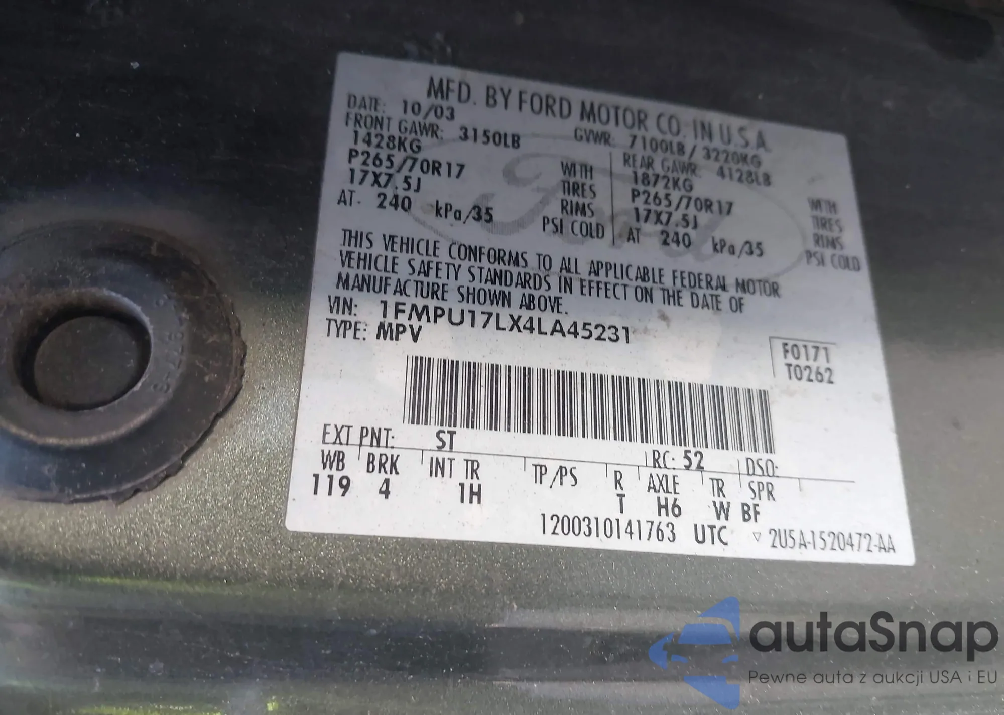 • VIN 1FMEU15W44LB04018