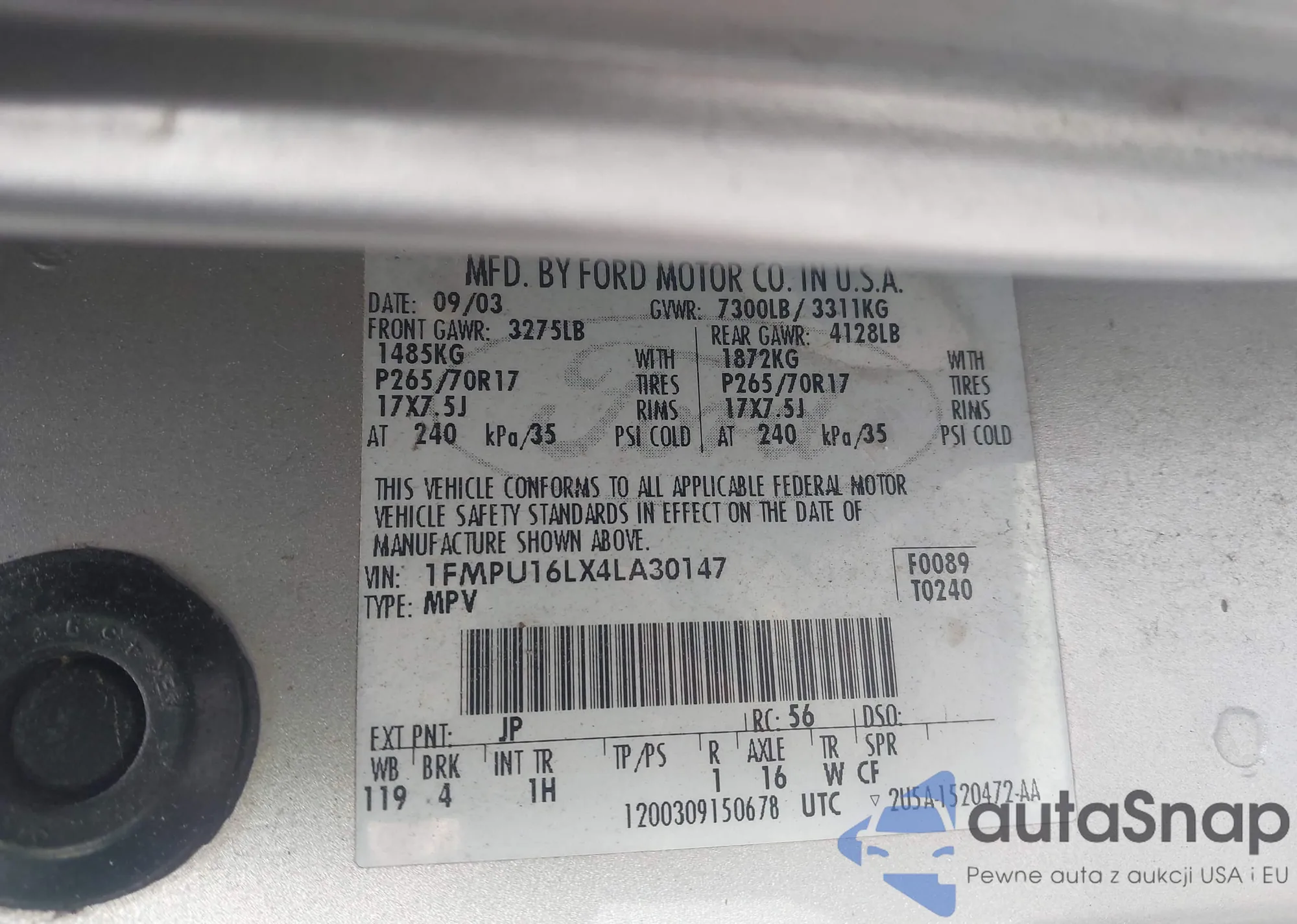 • VIN 1FMPU16LX4LA30147