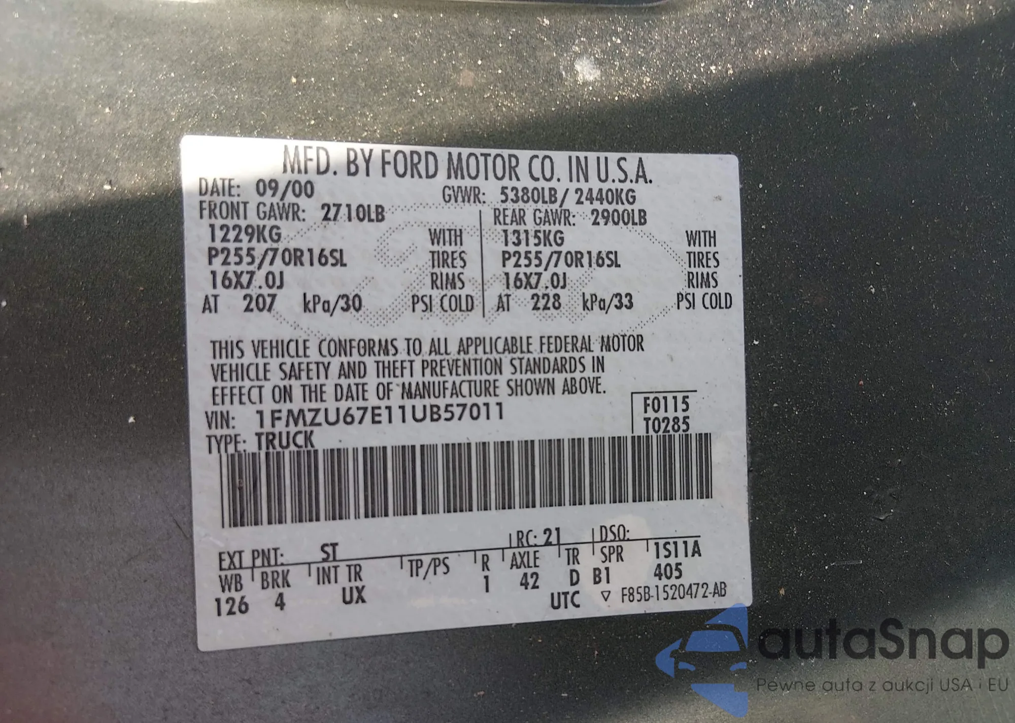 • VIN 1FMZU67E11UB57011