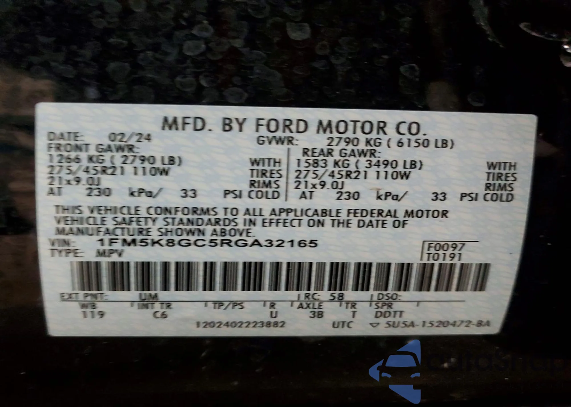 • VIN 1FMSK8FH8MGA36347