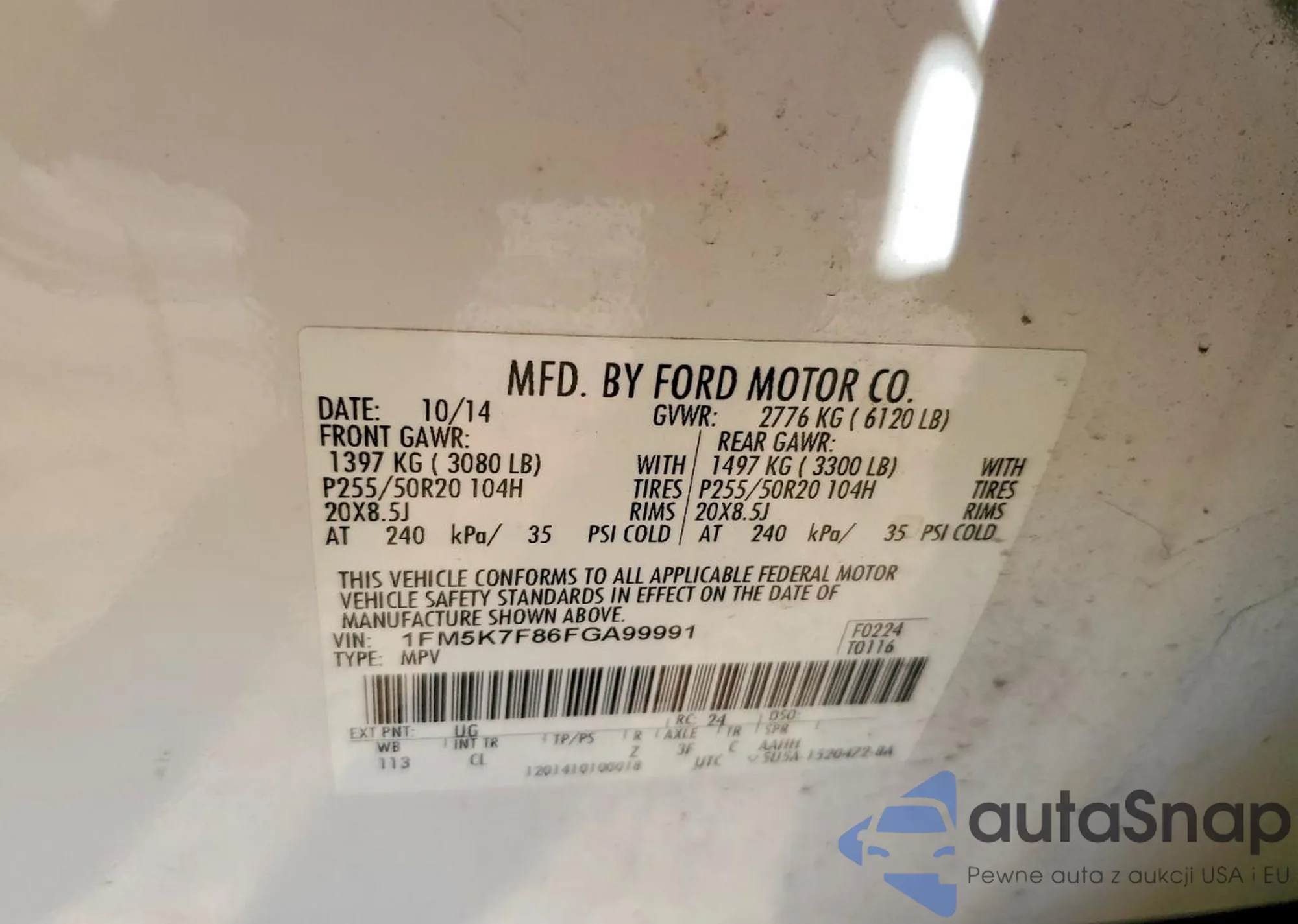 • VIN 1FM5K7F86FGA99991