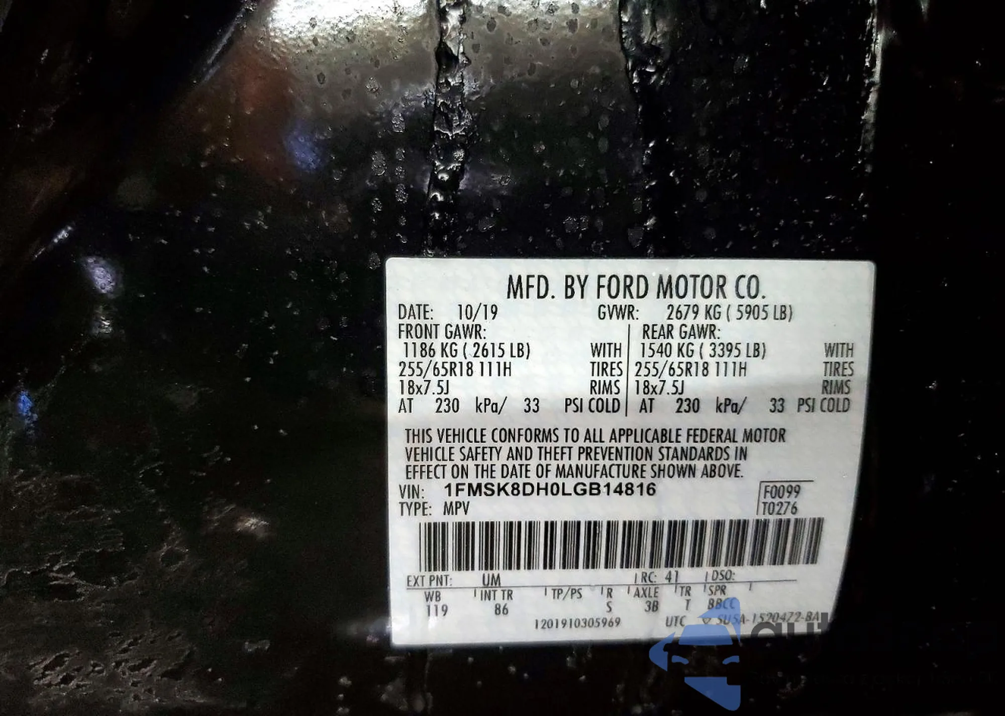 • VIN 1FMSK8DH0LGB14816