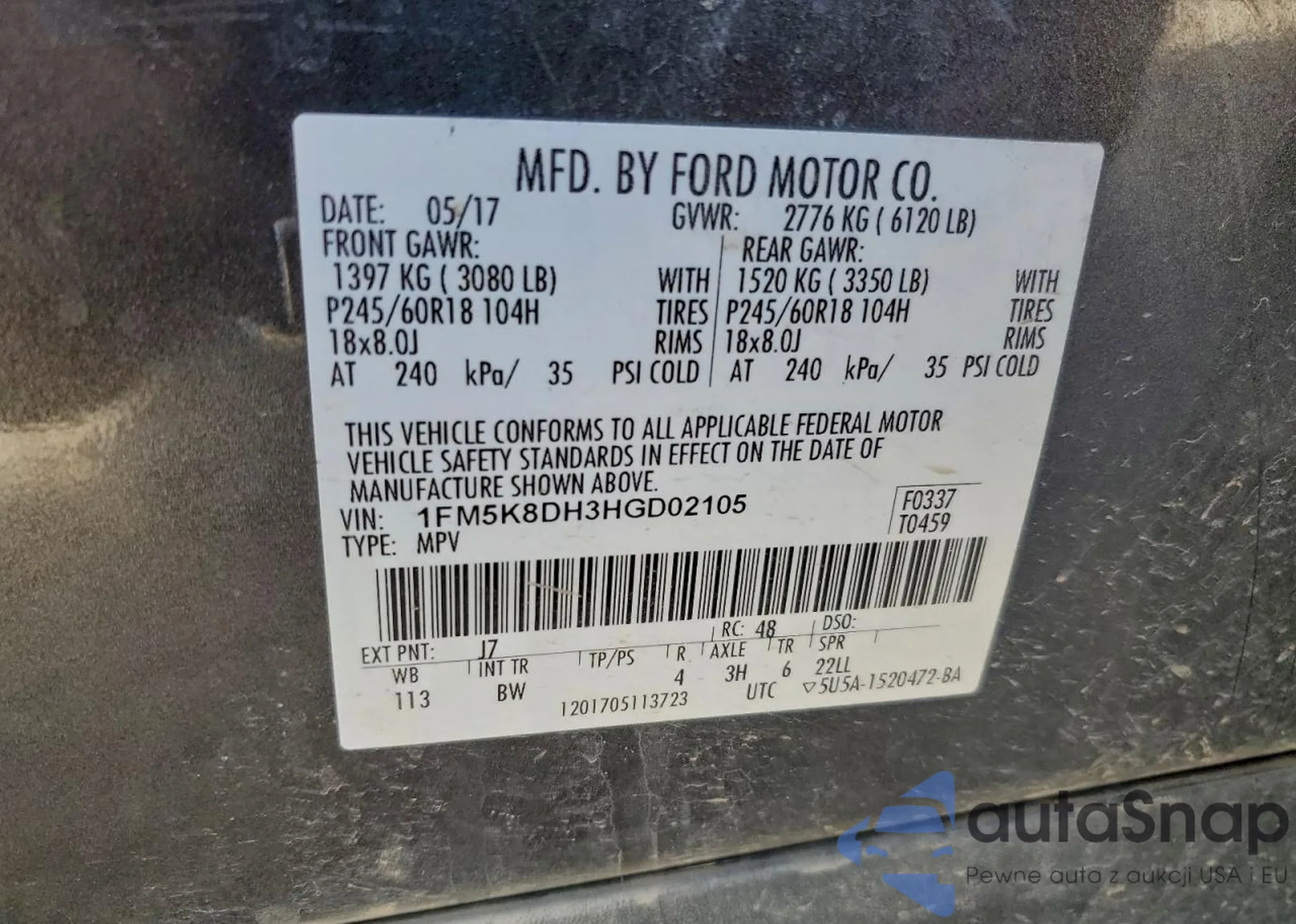 • VIN 1FM5K8DH3HGD02105