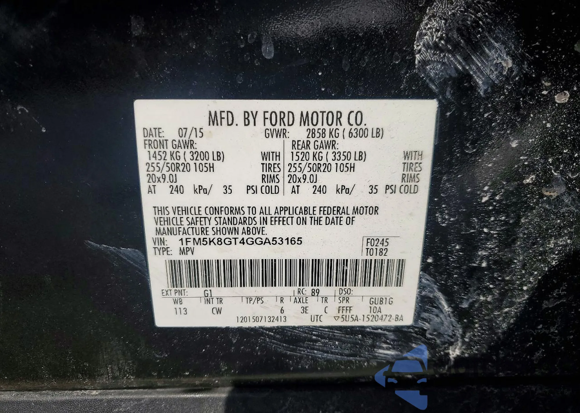 • VIN 1FM5K8GT4GGA53165