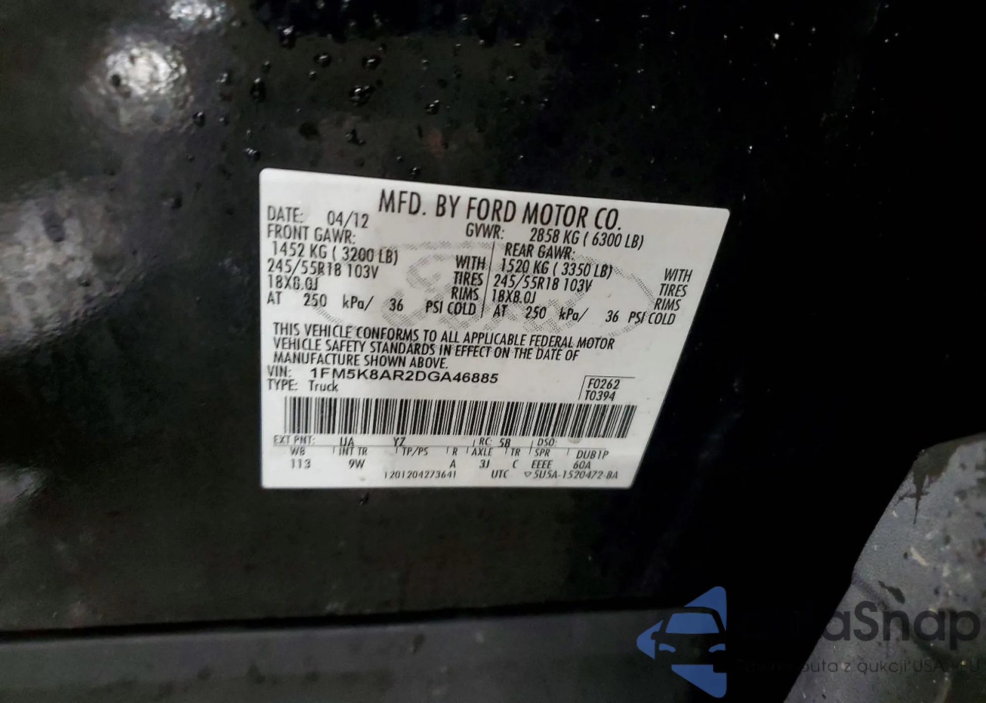 • VIN 1FM5K8AR2DGA46885