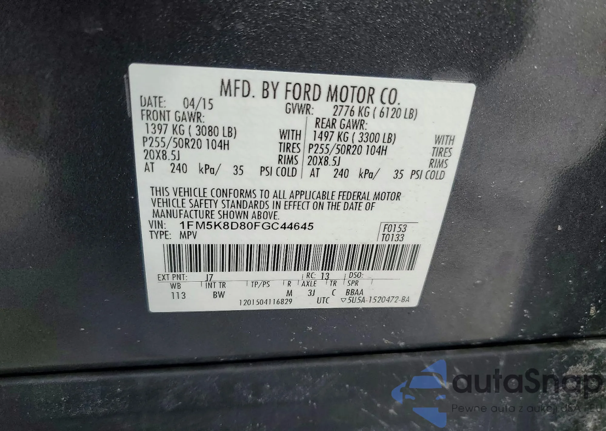 LOT: 76041605 VIN: 1FM5K8D80FGC44645