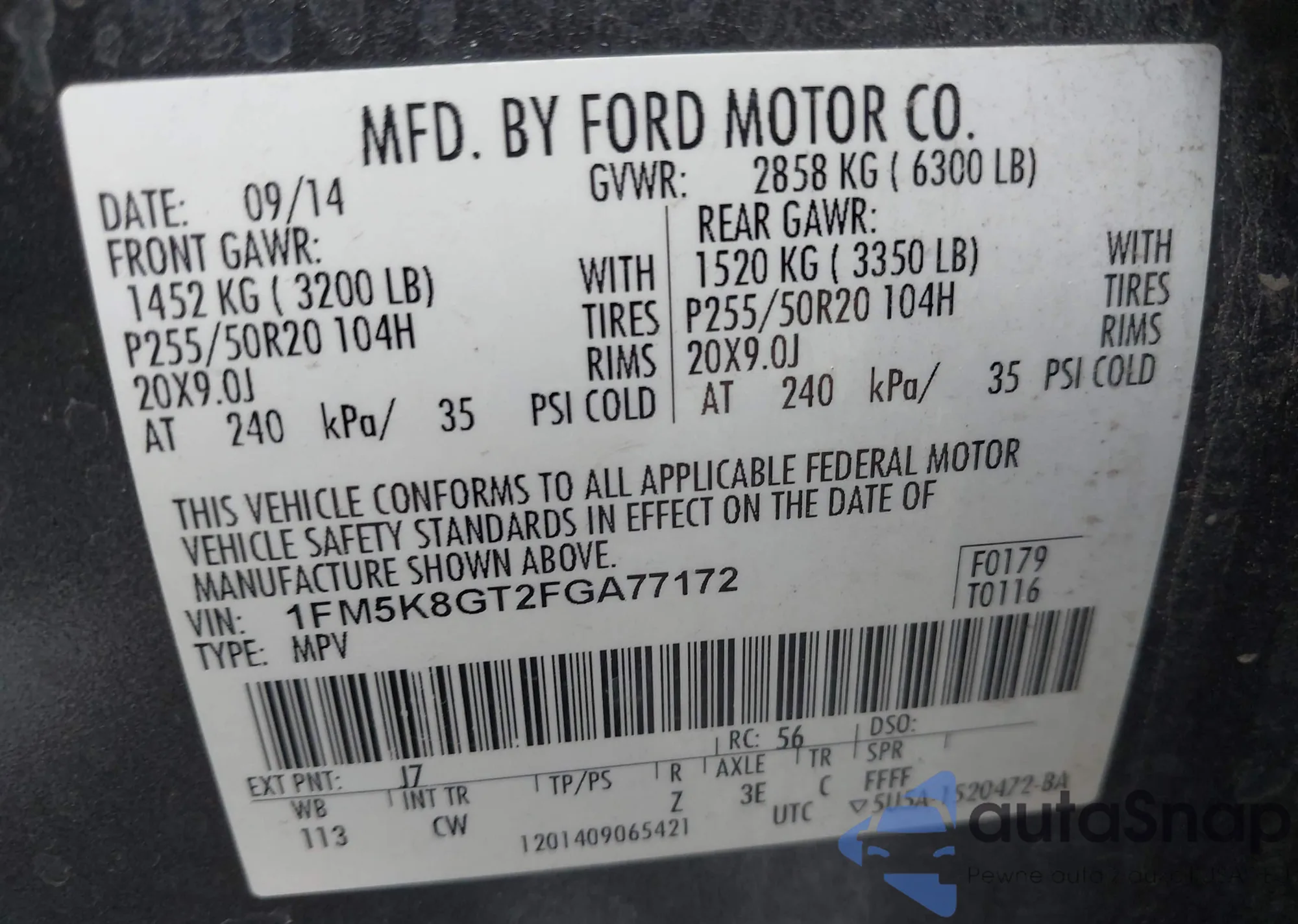 • VIN 1FM5K8GT2FGA77172