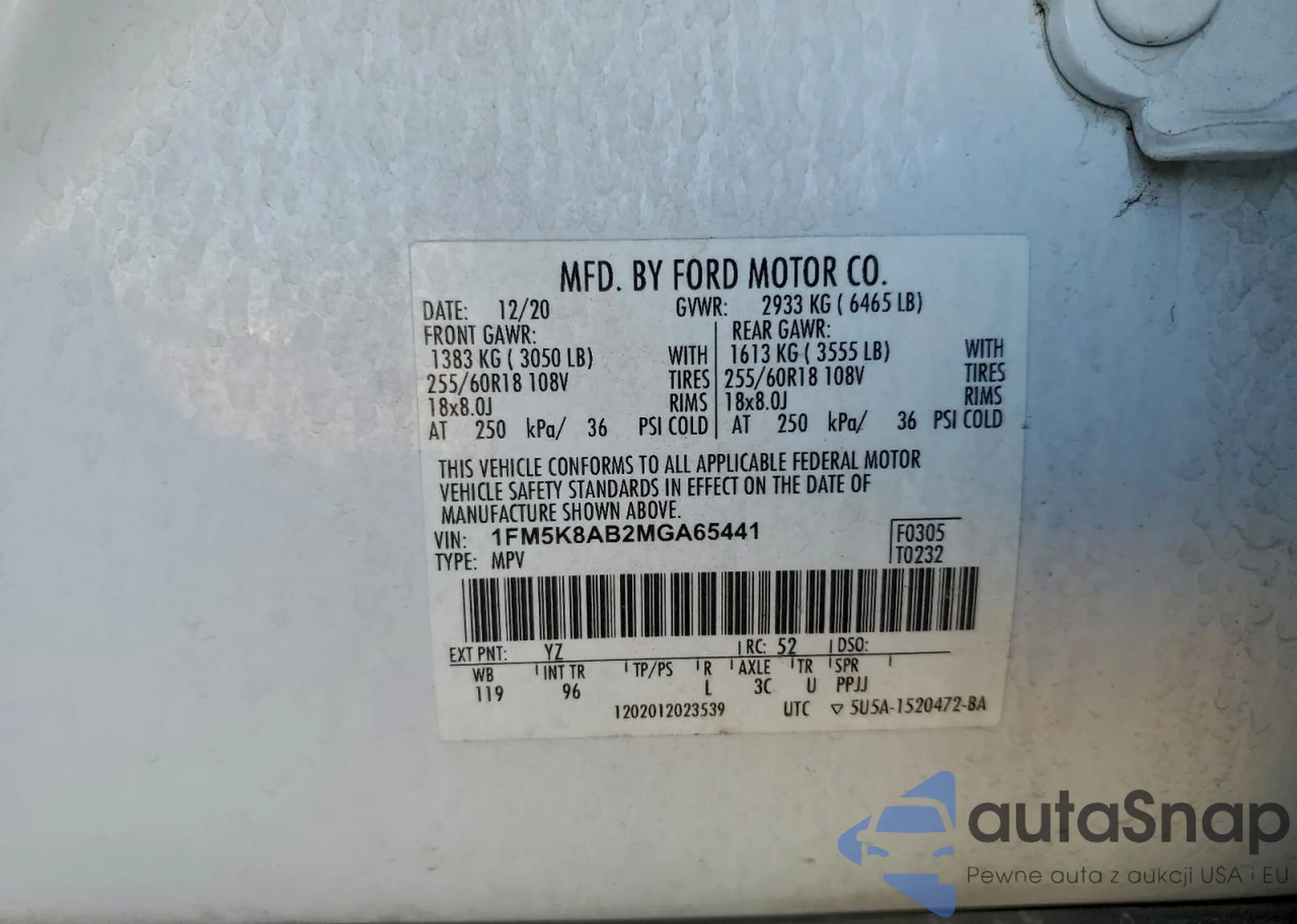 • VIN 1FMSK8DH5MGC15478