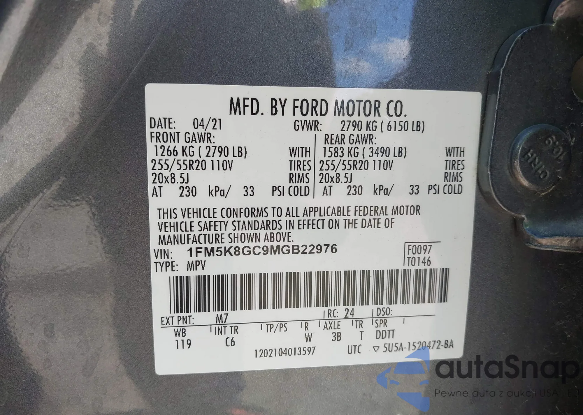 • VIN 1FMSK8DH2MGC47904