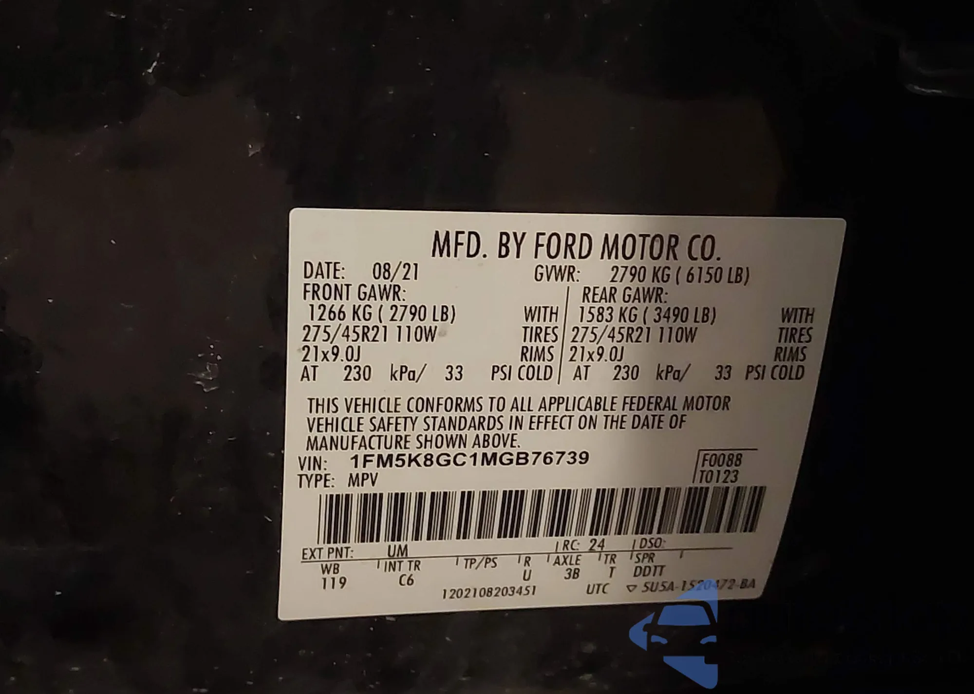• VIN 1FMSK7DH9MGC17065