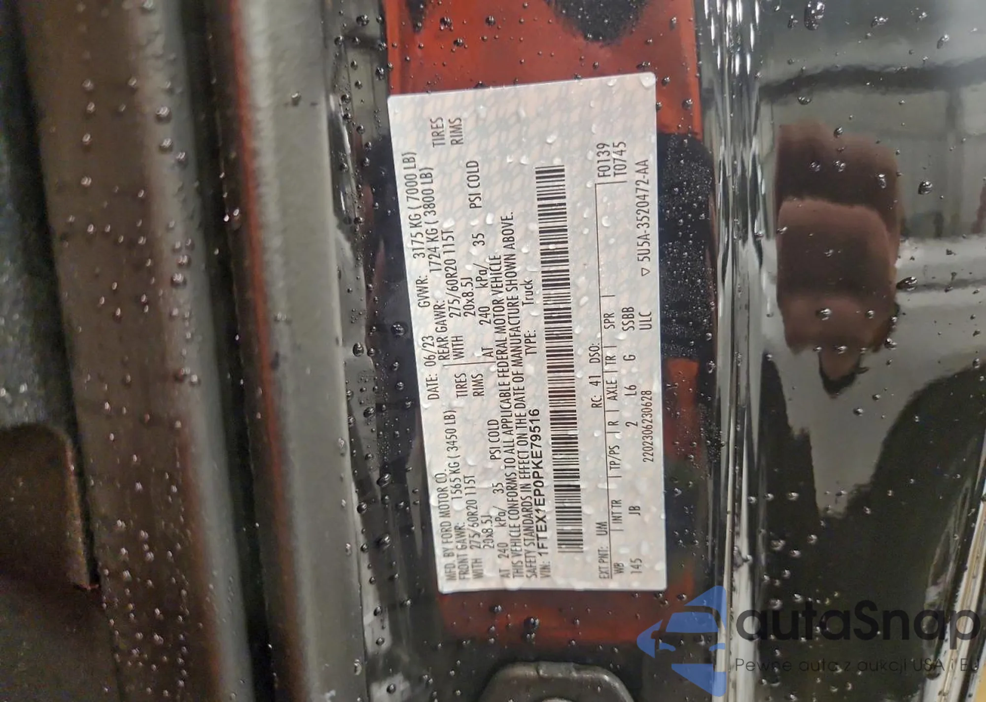 LOT: 72352025 VIN: 1FTPW14534KD69695