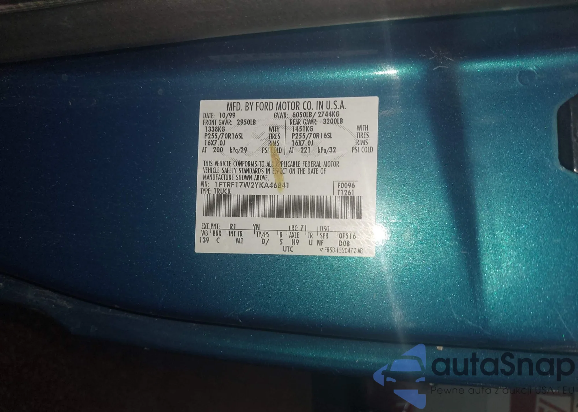 • VIN 1FTRF17WDYKA46841