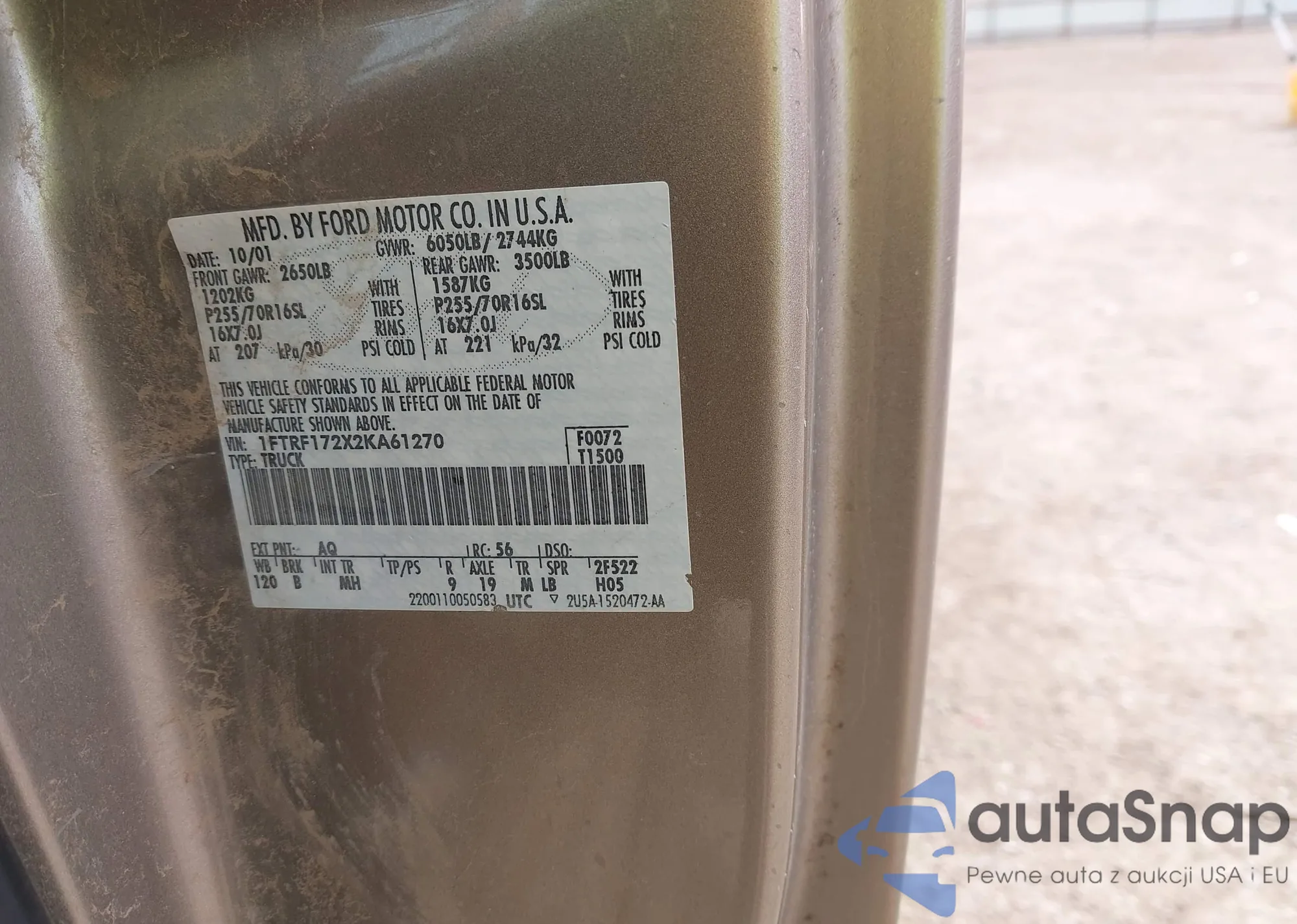 LOT: 44329411 VIN: 1FTRF172X2KA61270