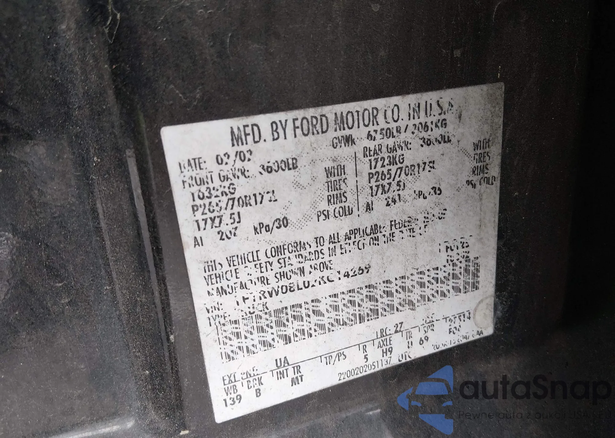 • VIN 1FTRW08L02KC14269