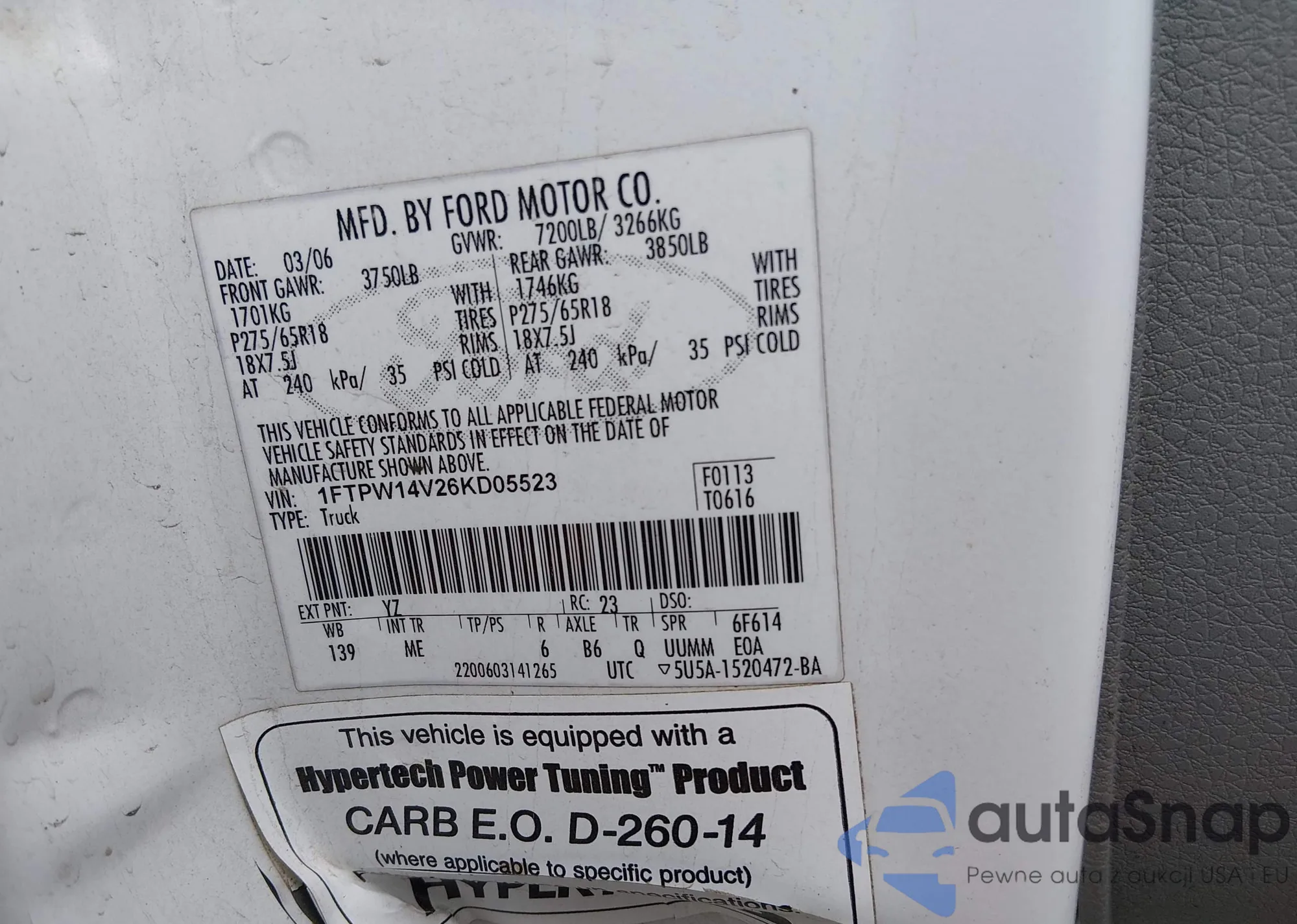 • VIN 1FTPW14V26KD05523