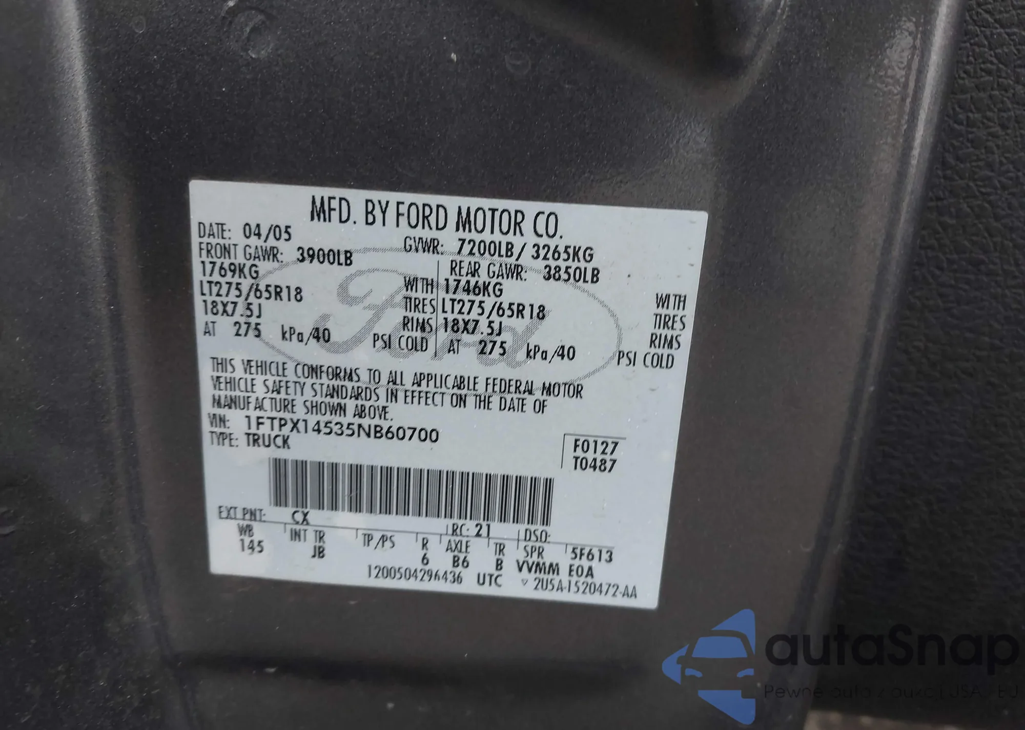 • VIN 1FTPX14535NB60700