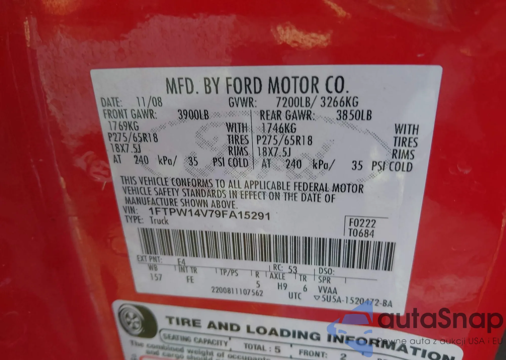 • VIN 1FTPW14V79FA15291