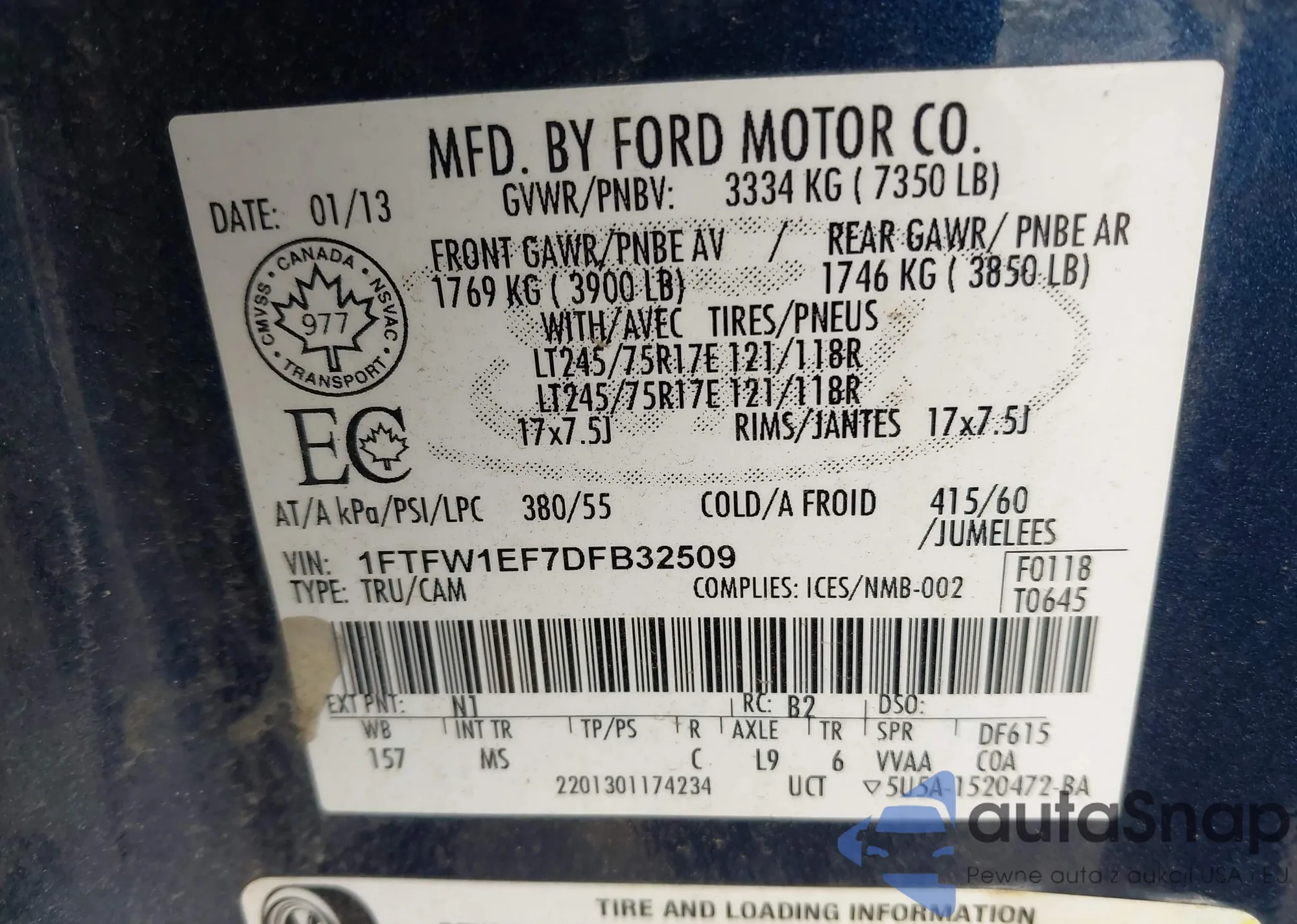 • VIN 1FTFW1EF7DFB32509