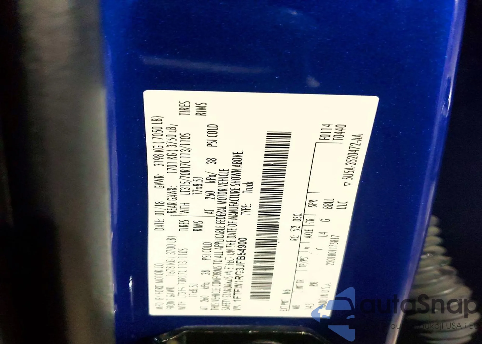 • VIN 1FTFW1RG3JFB84900