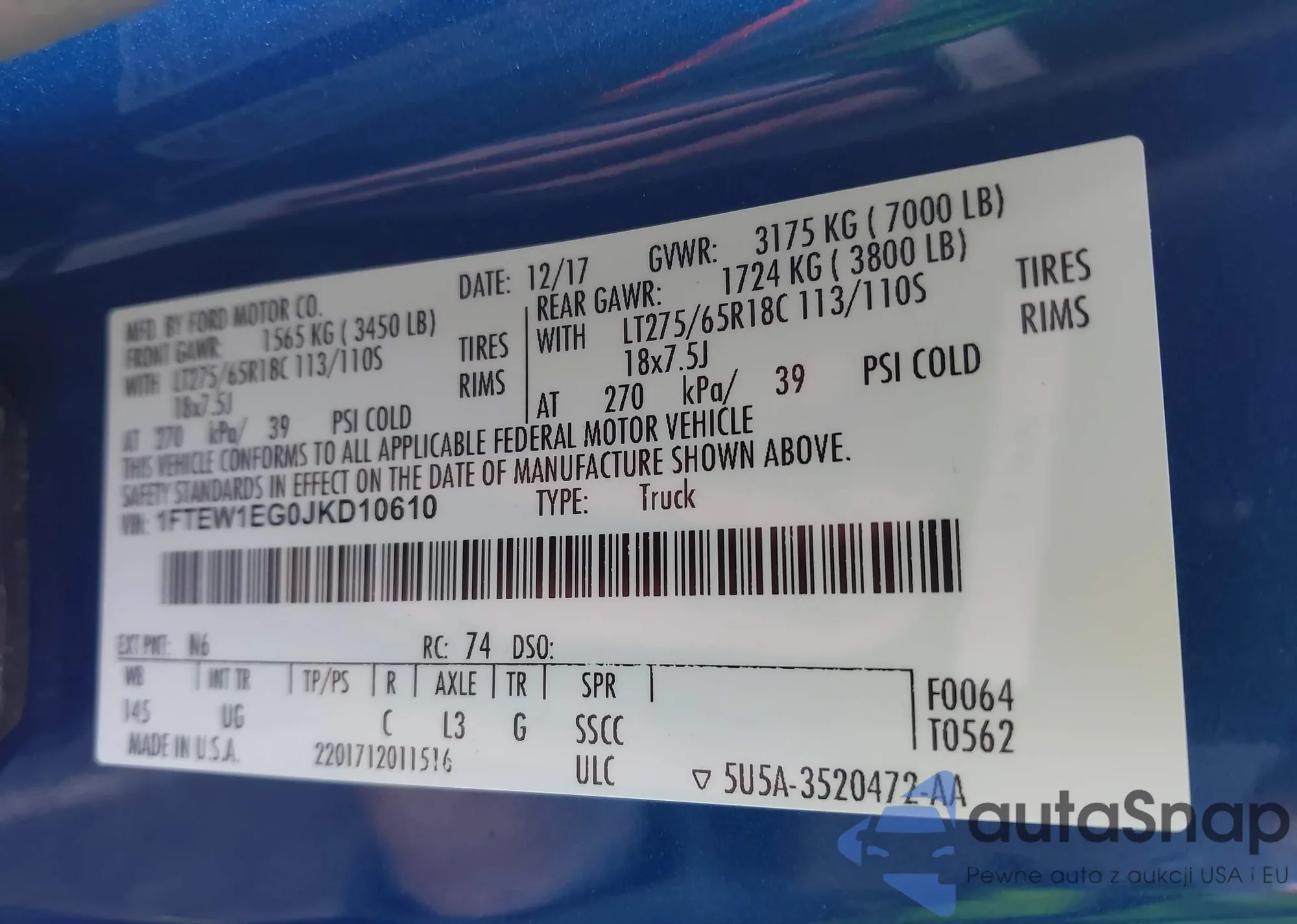 • VIN 1FTEW1EG5JKC87616