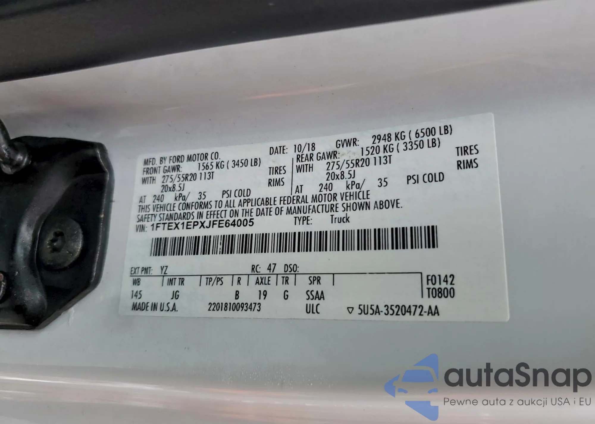 LOT: 93788045 VIN: 1FTEX1EPXJFE64005