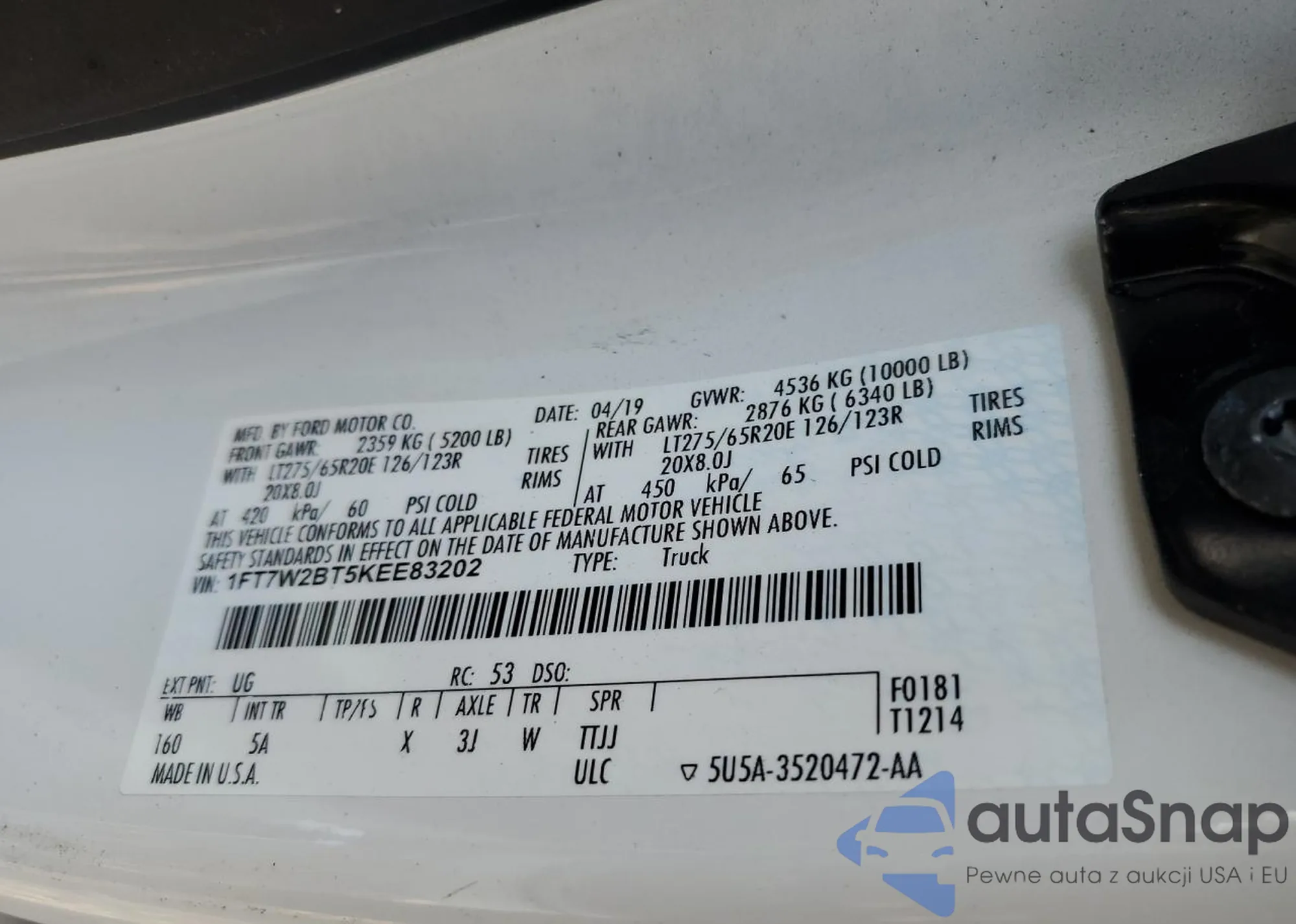 LOT: 70200095 VIN: 1FT7W2BT5KEE83202